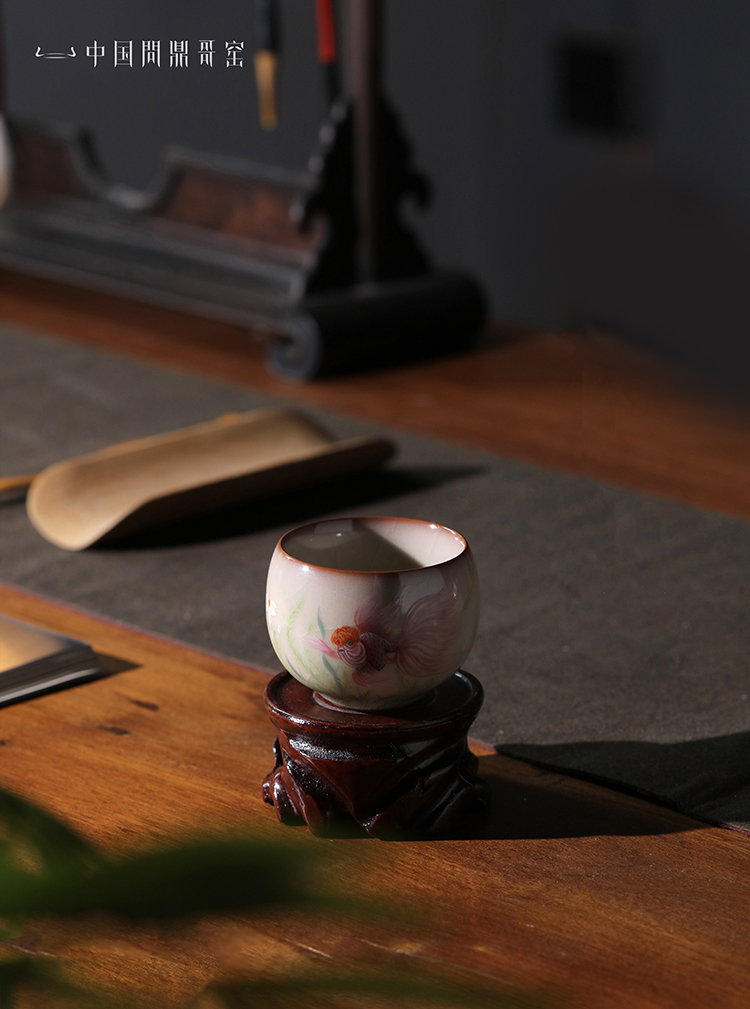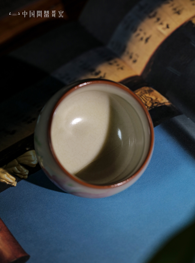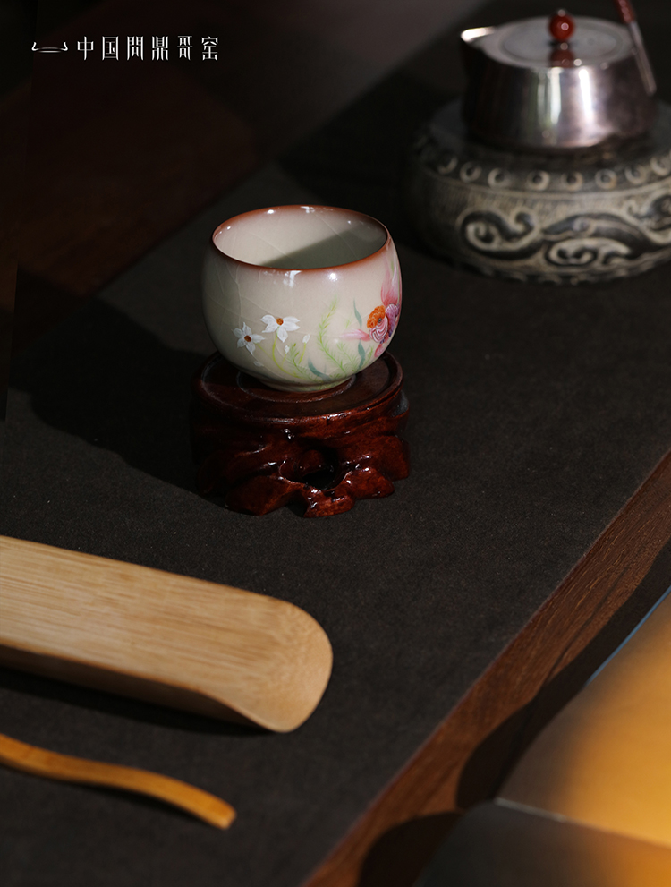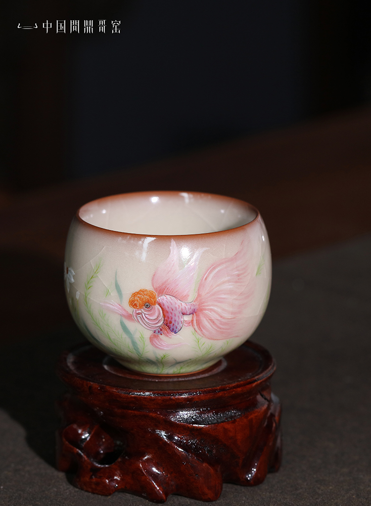 问鼎哥窑牛角款晴雪杯(鱼游春水)