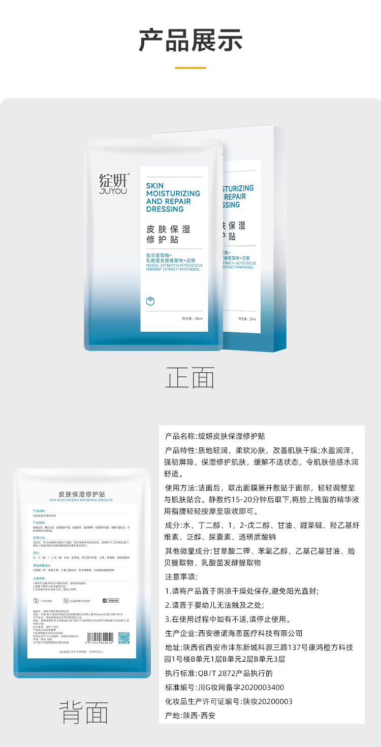 【面膜】绽妍皮肤保湿修护贴5片(妆品蓝膜)25ml*5 日常维稳 舒缓敏皮 补水修护