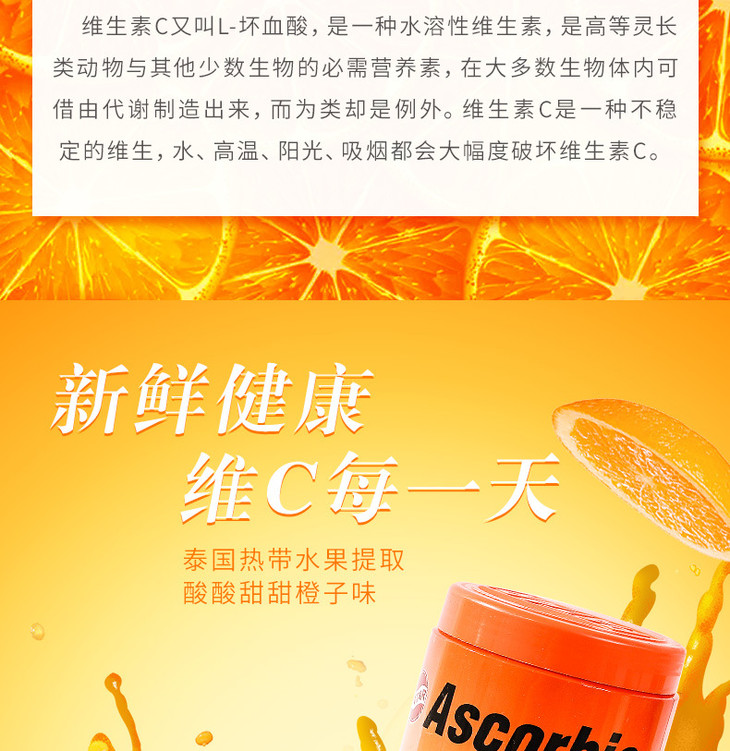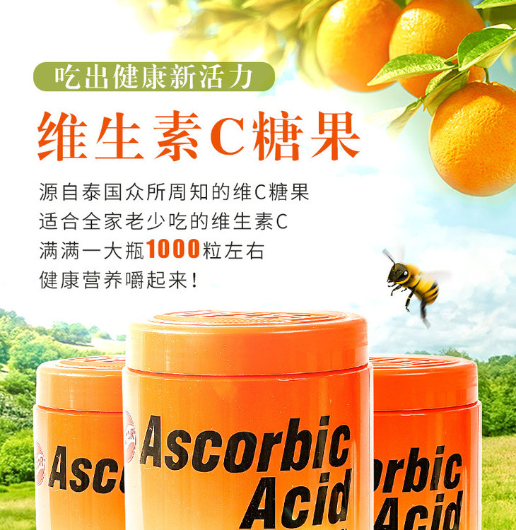 【包邮】泰国葩塔VC咀嚼片 网红零食香橙维生素VC糖400g葩塔1000粒