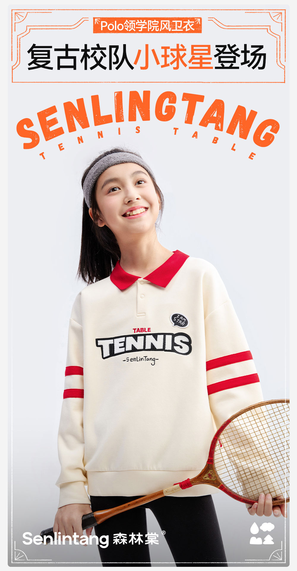 【Polo领学院风卫衣】森林棠25秋款椰子棉宽松运动复古撞色翻领上衣60353243