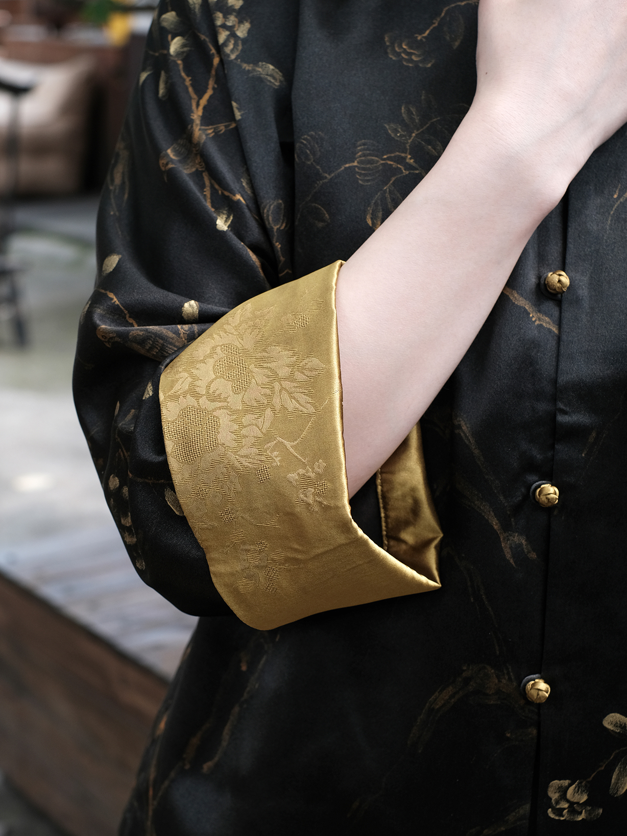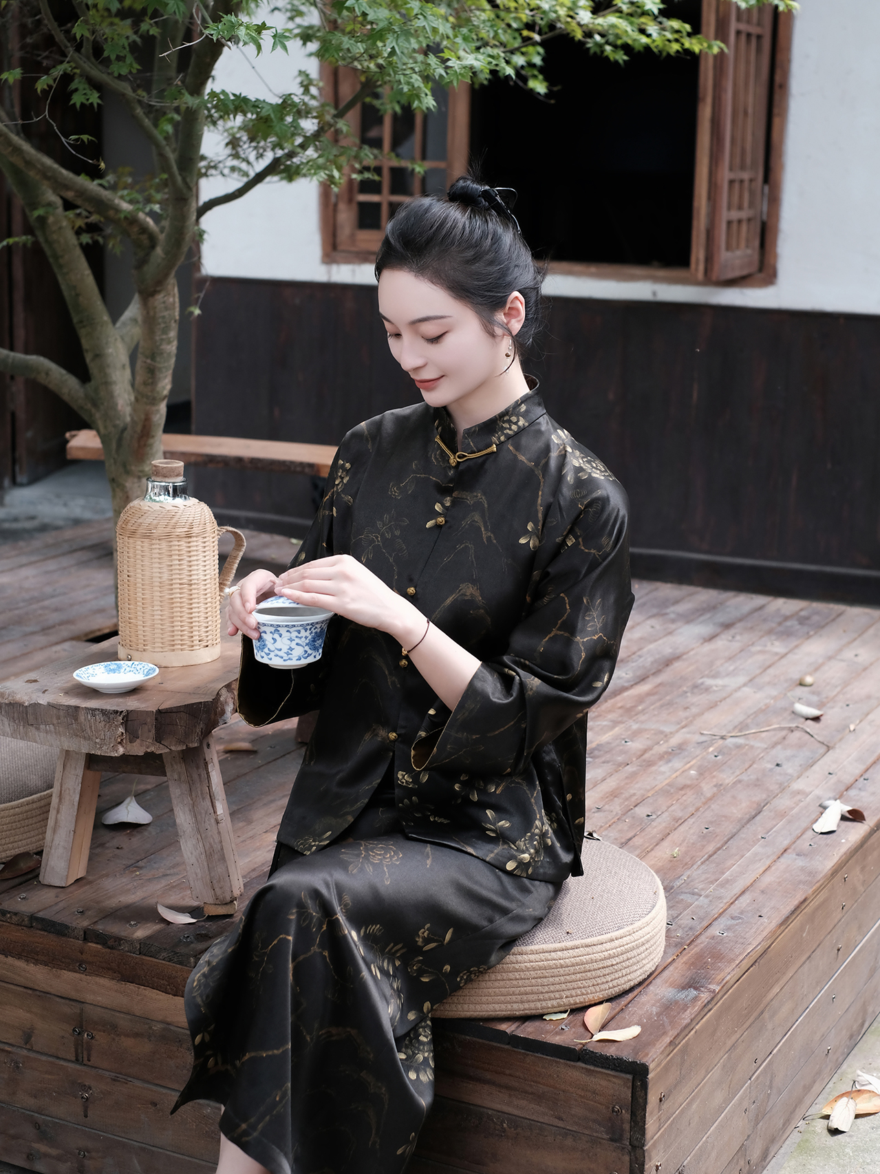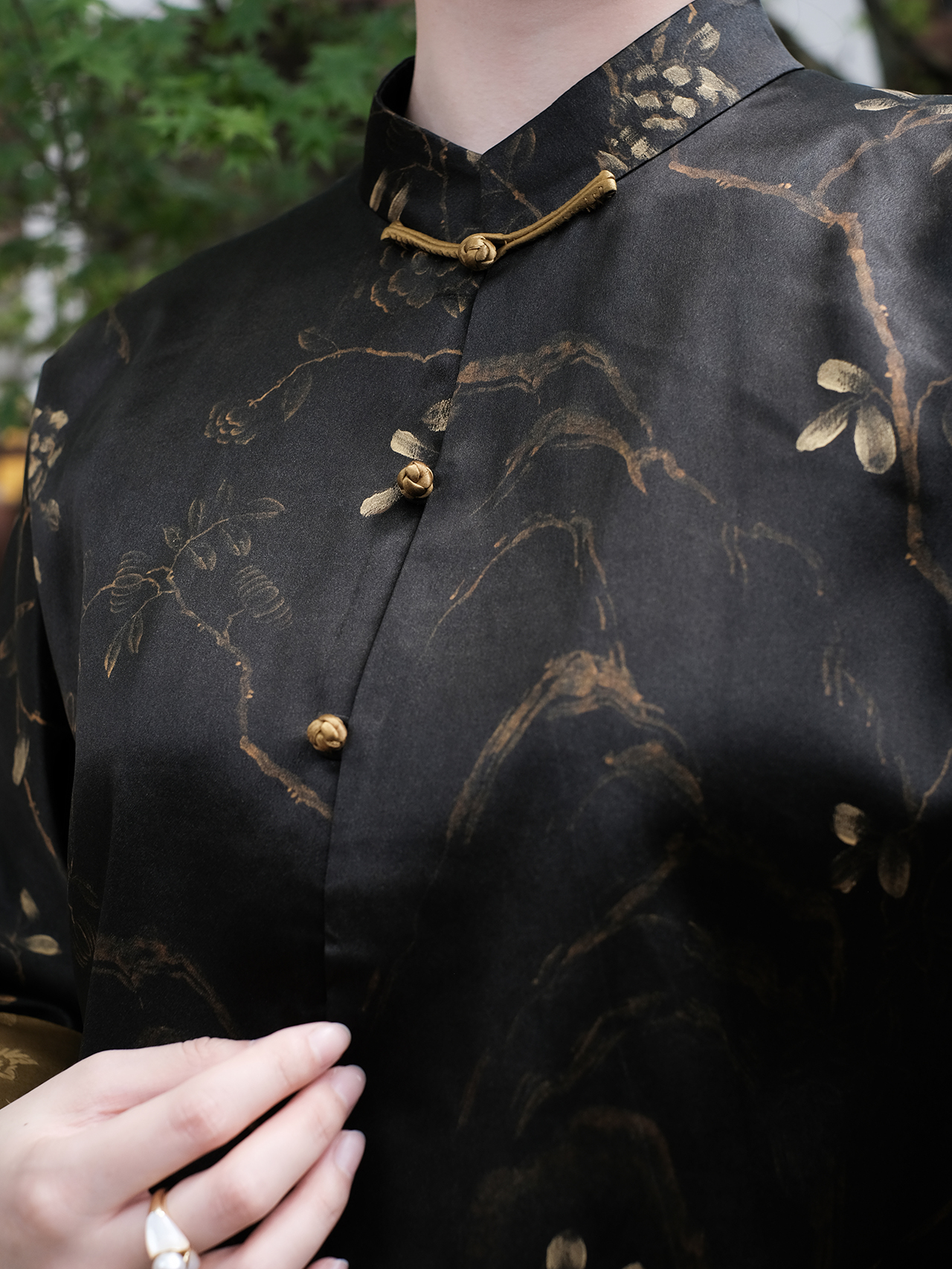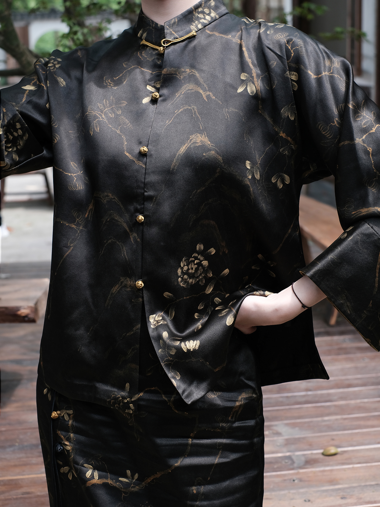 盛唐牡丹|重缎香云纱手绘对襟外套