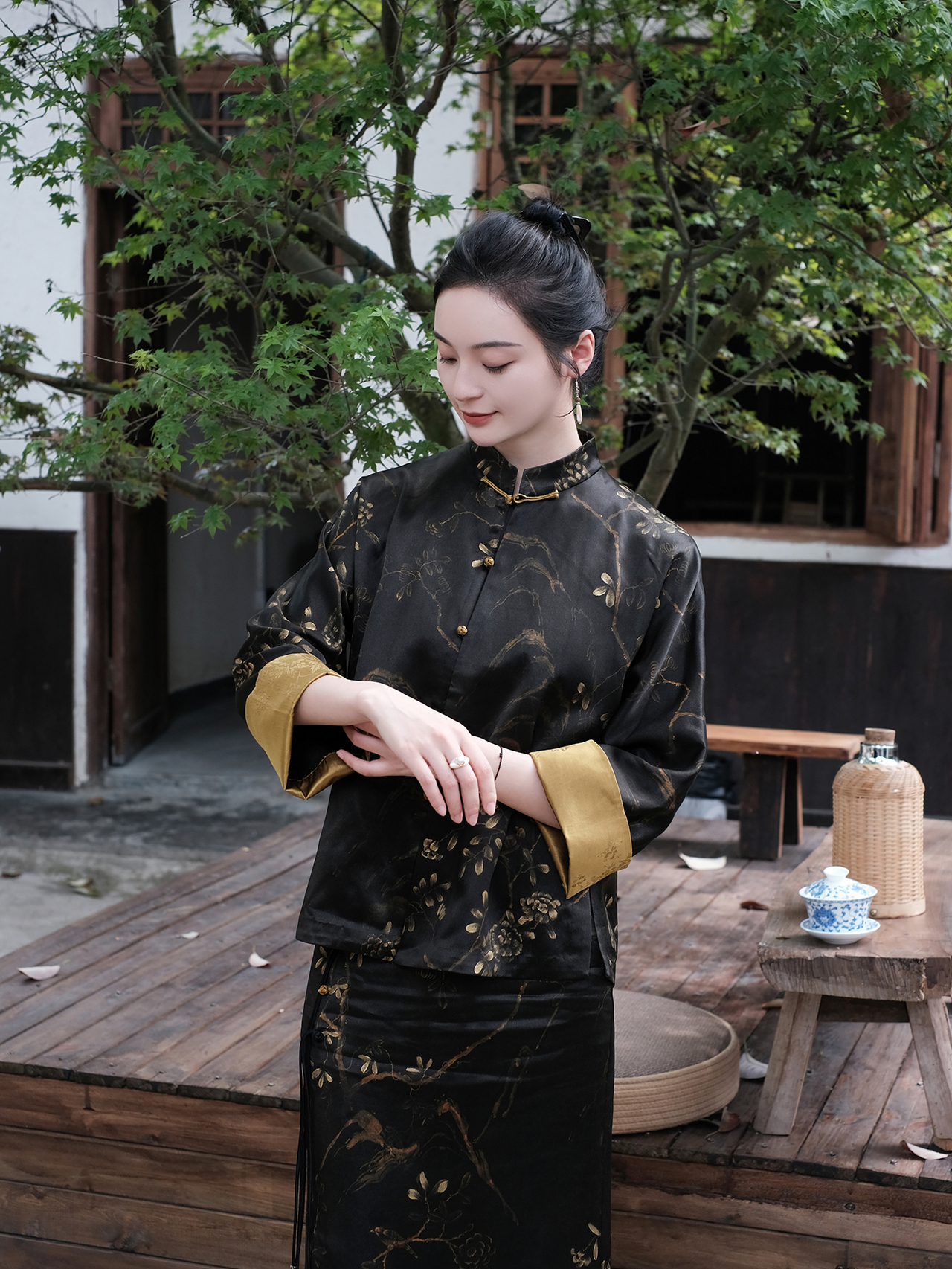 盛唐婧 |新中式丝绒鱼尾半裙-黑色