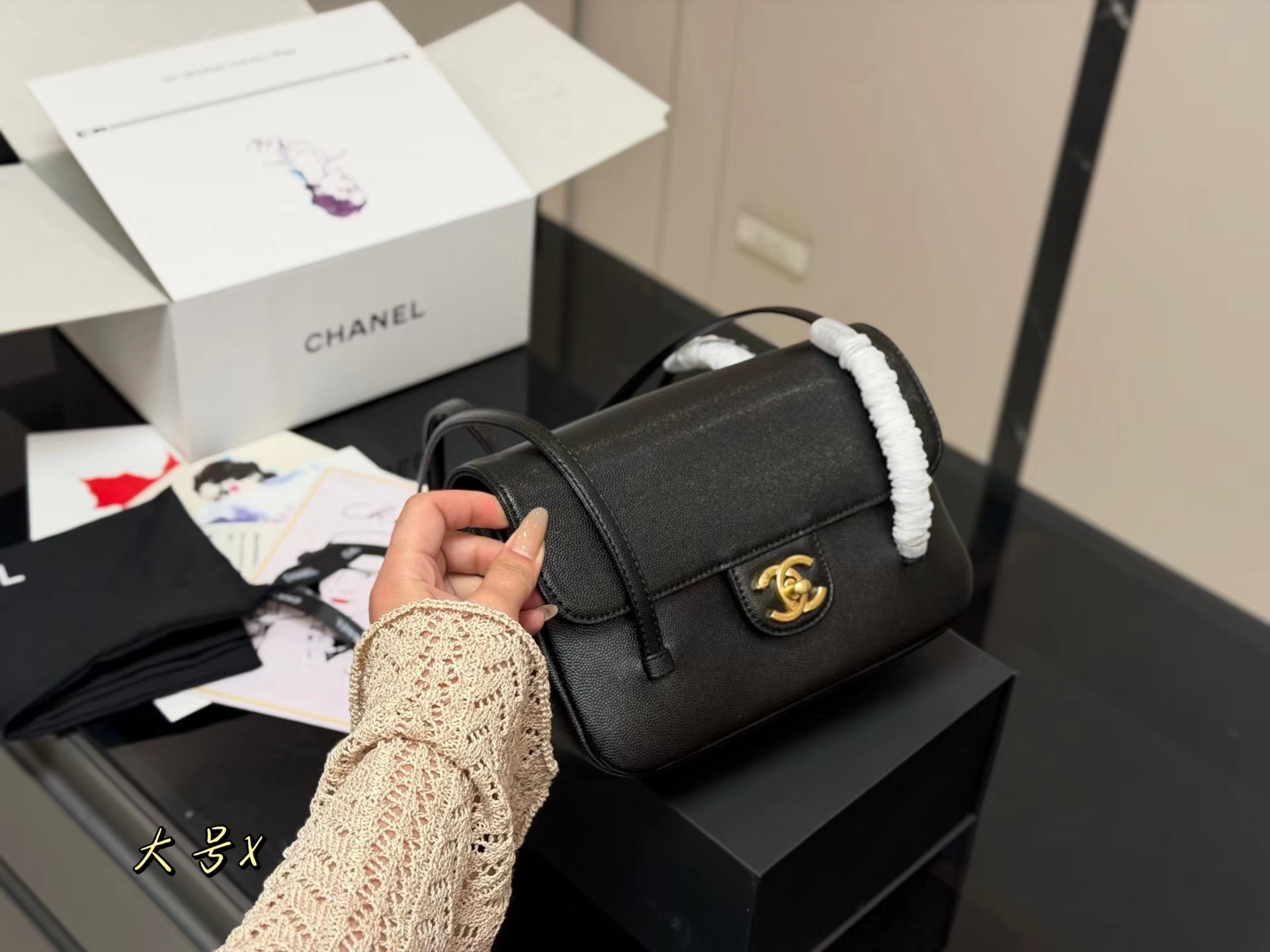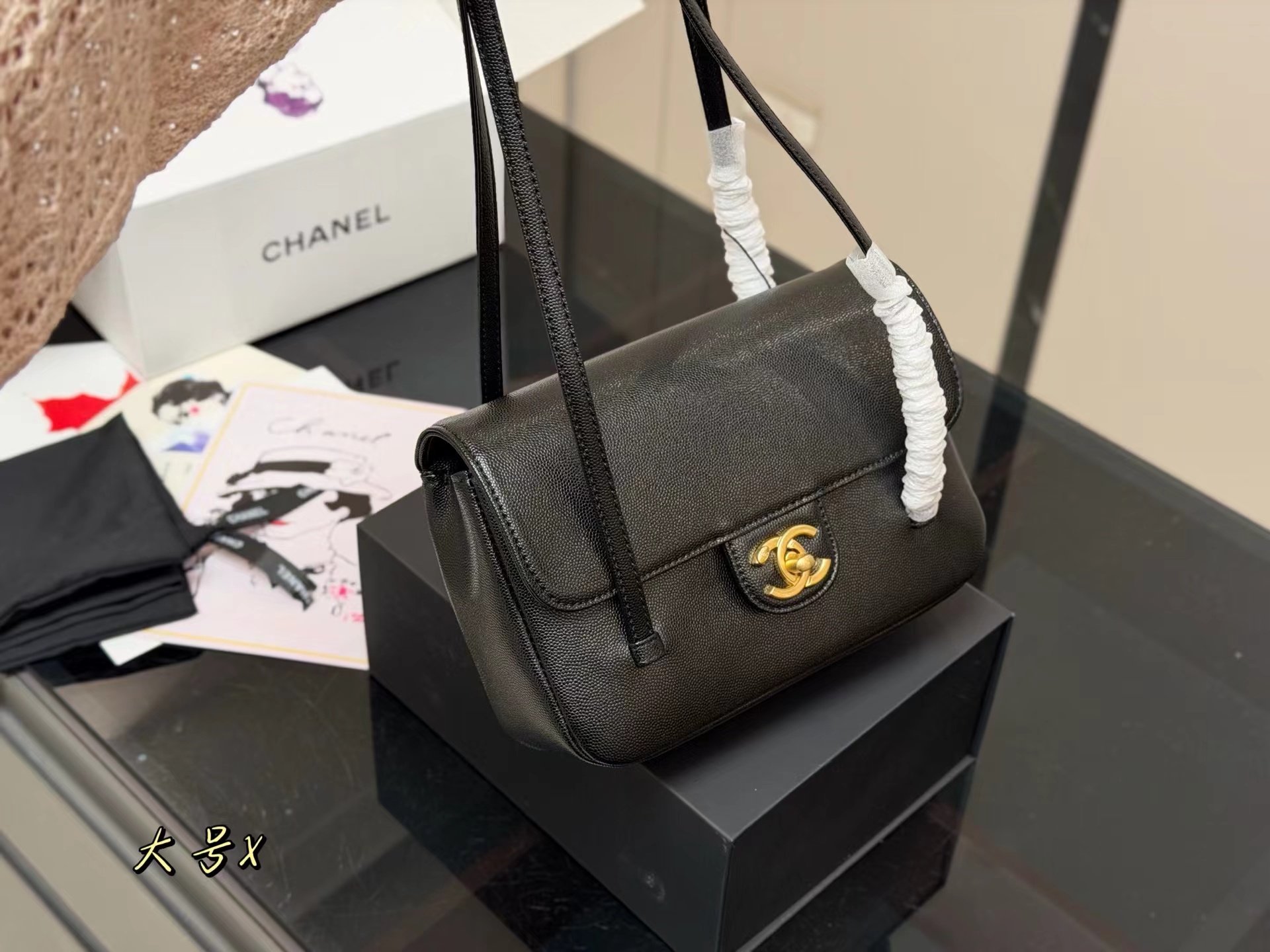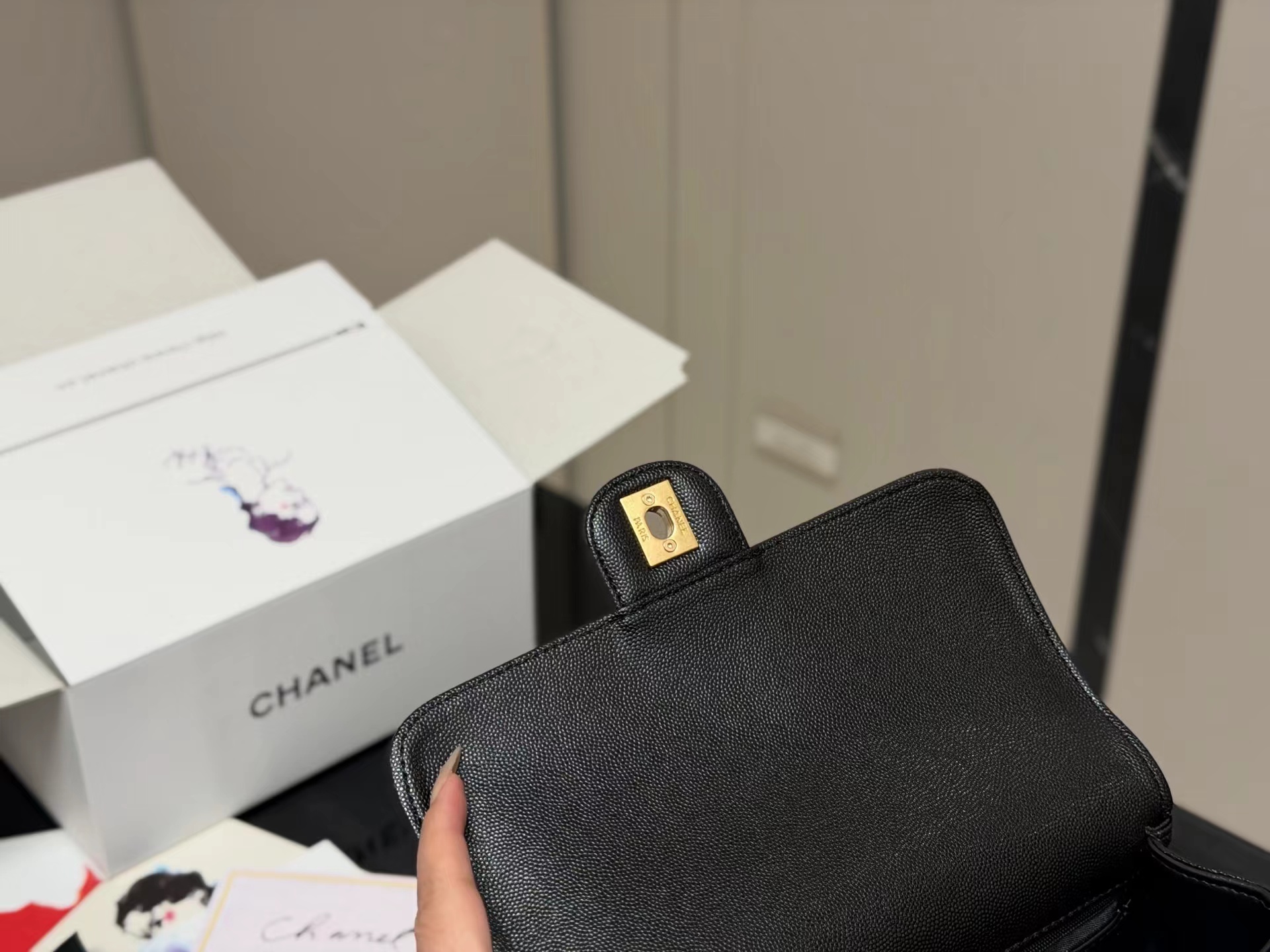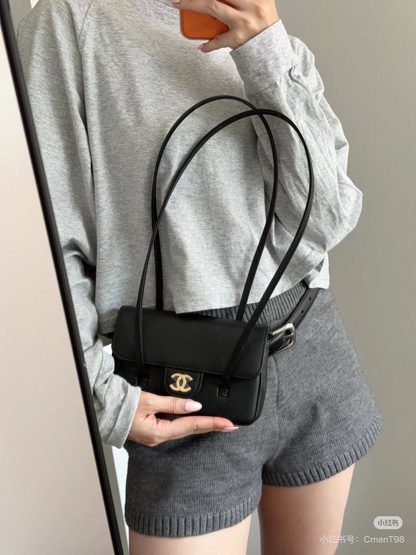 牛皮 双盖flap比传统常见的classic flap更简洁五金质感厚实 logo偏复古金结合jing典包型