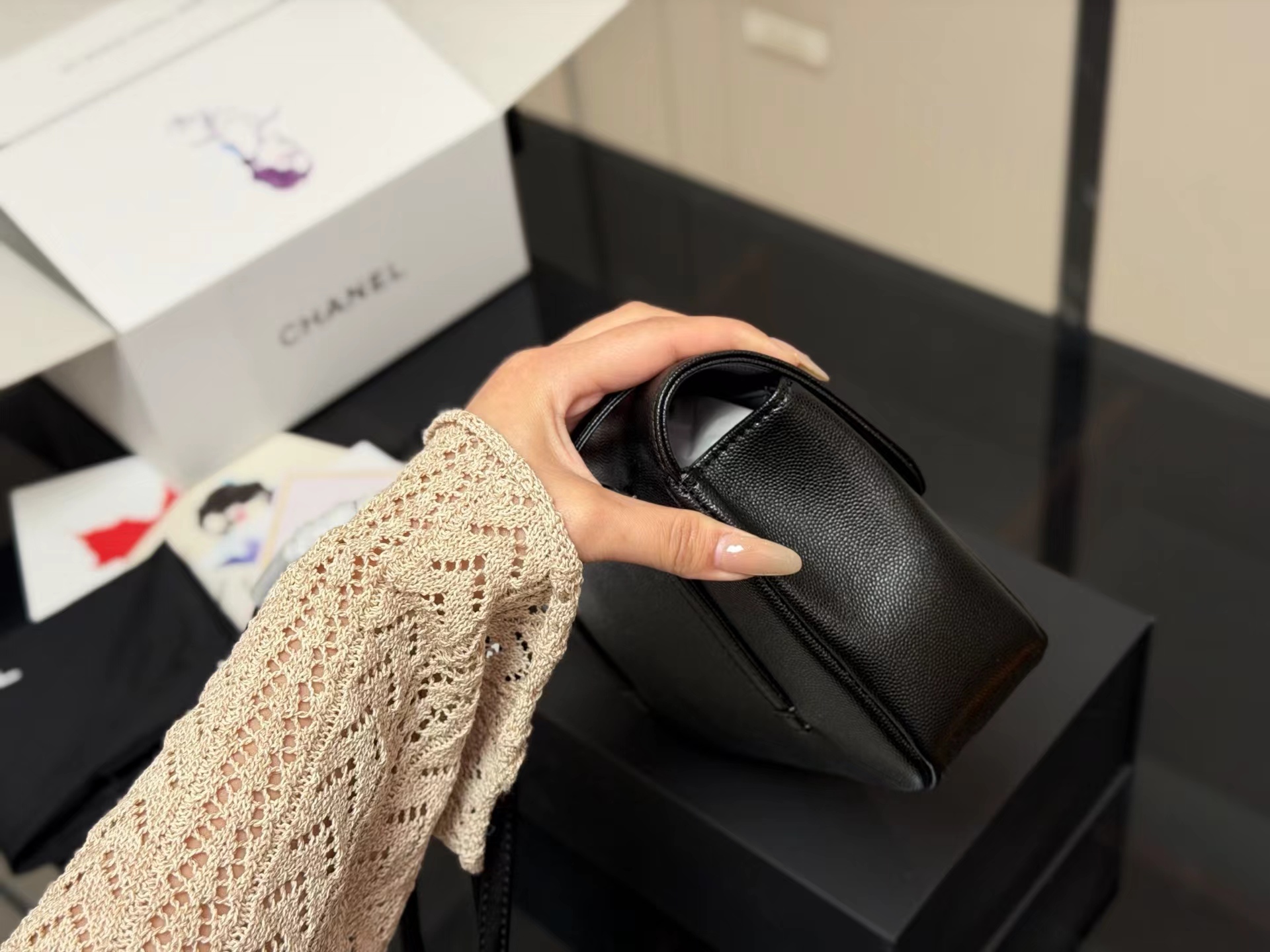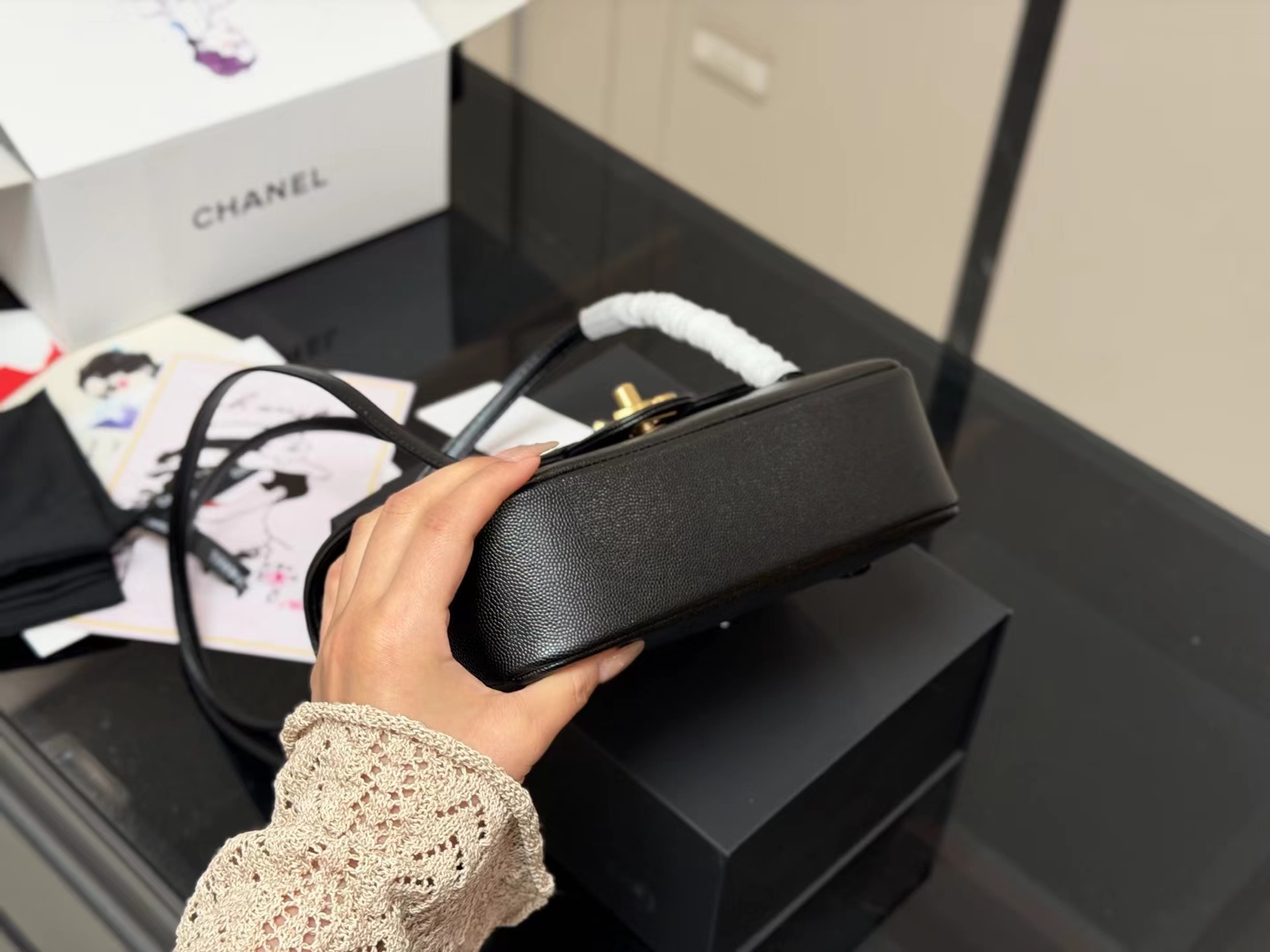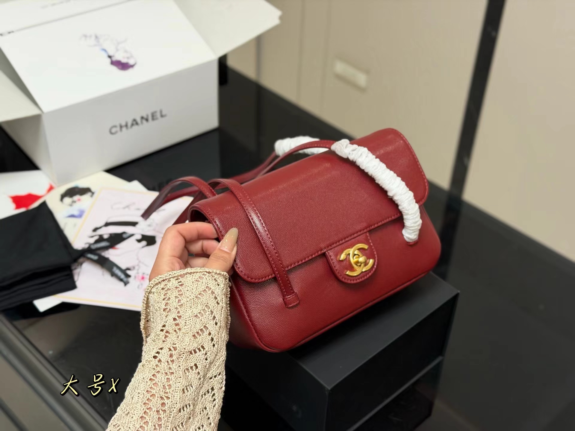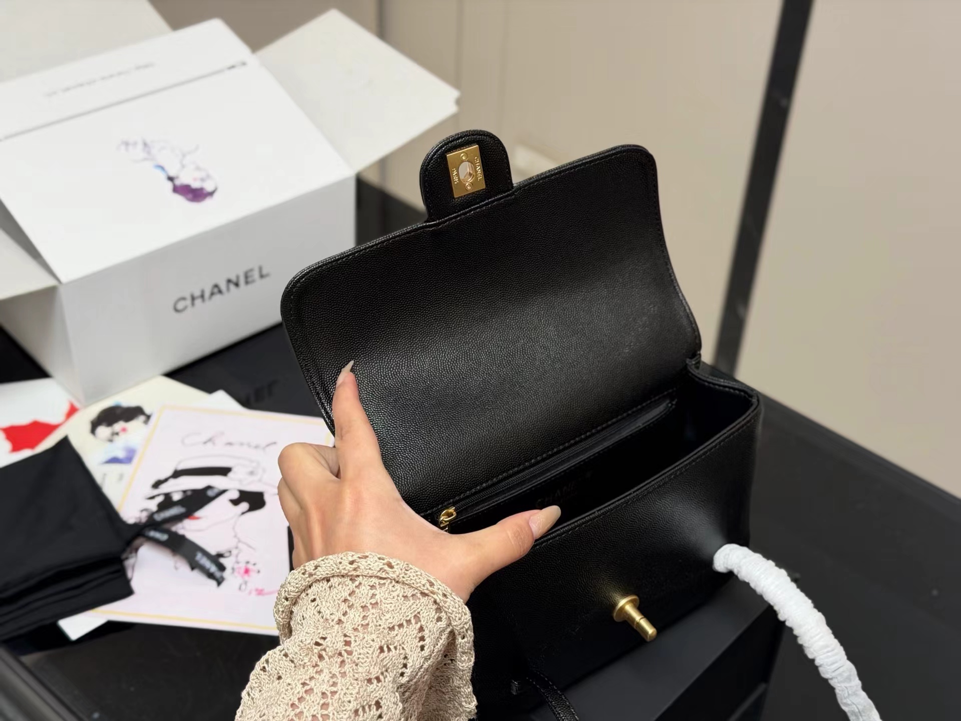 牛皮 双盖flap比传统常见的classic flap更简洁五金质感厚实 logo偏复古金结合jing典包型