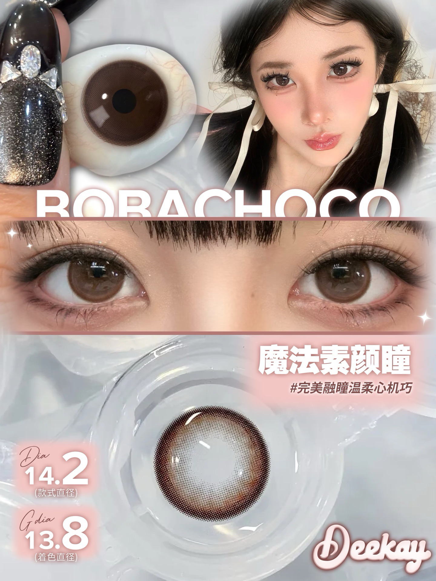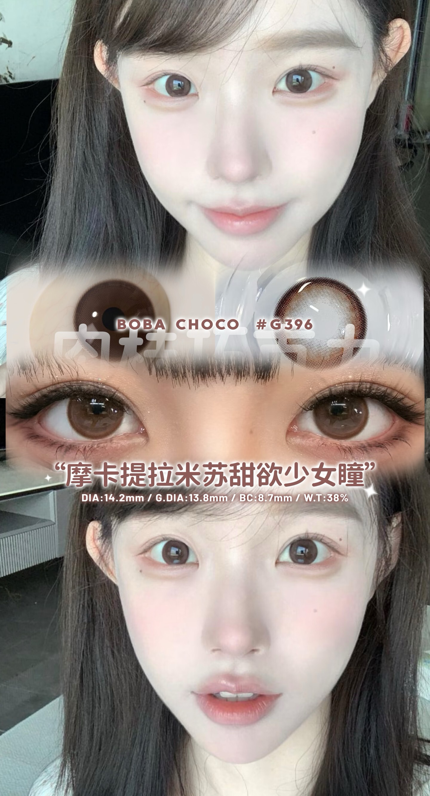 标注直径:14.2mm着色直径:13.8mm含水量:42.5%佩戴期限:半年抛(建议六个月)可配度数:0-1000( 有525/575)材质韩产含硅水凝胶