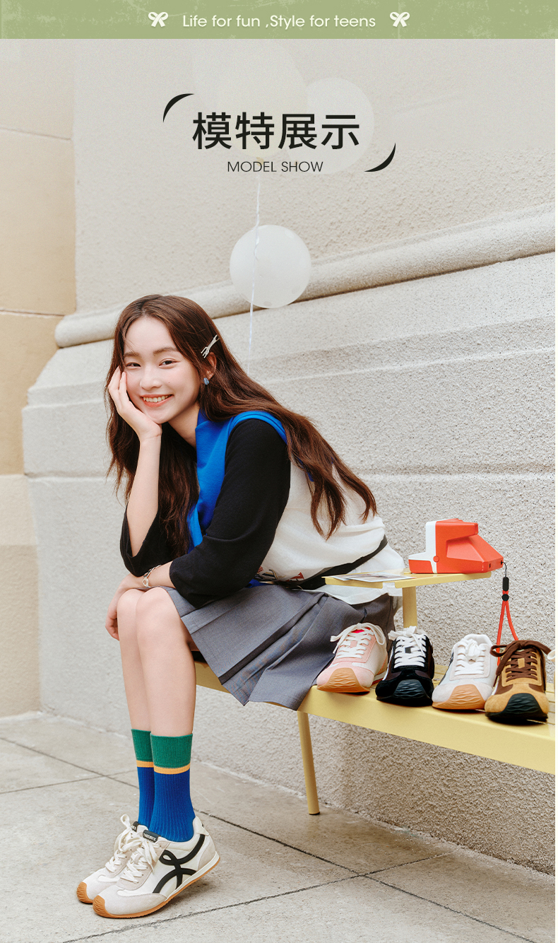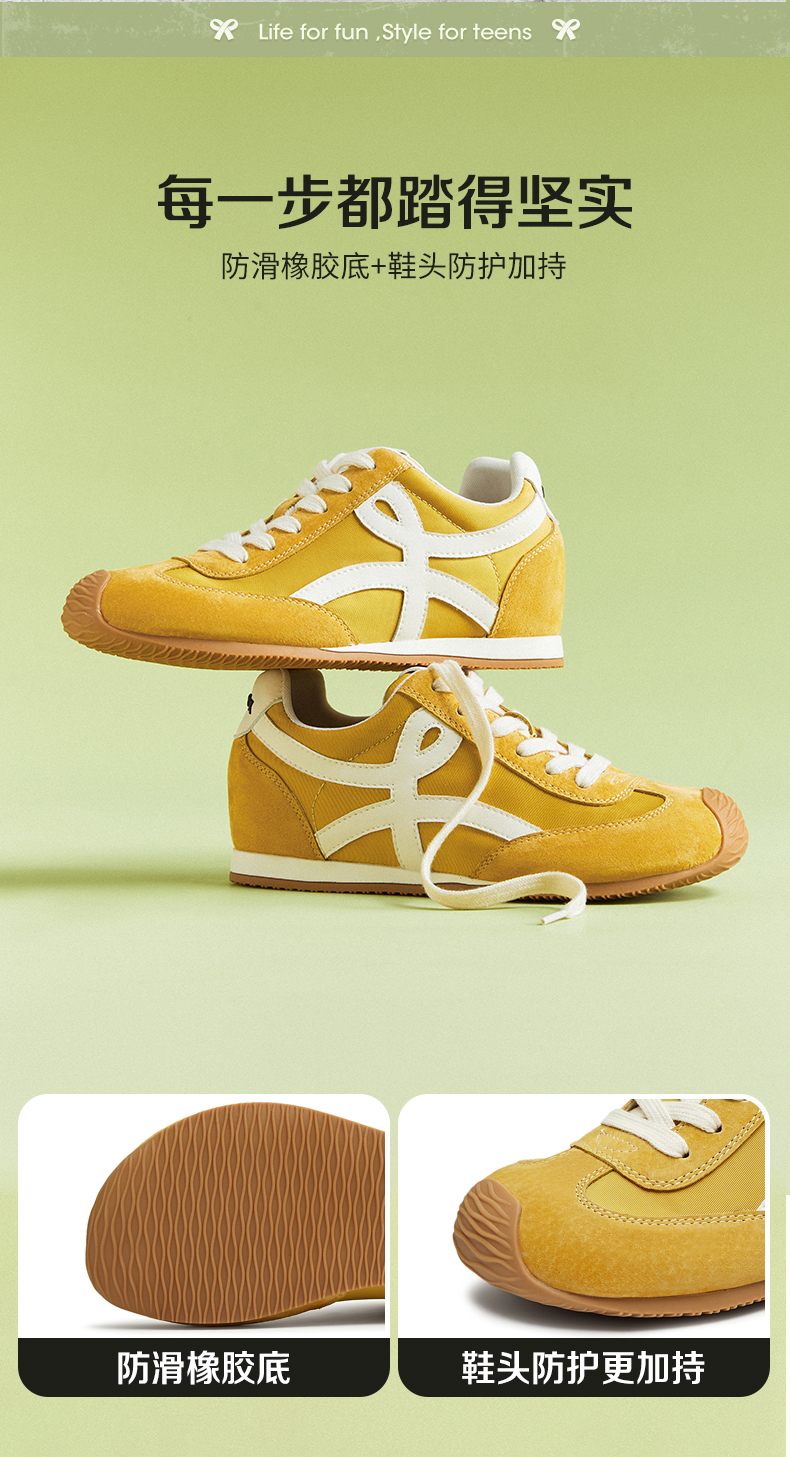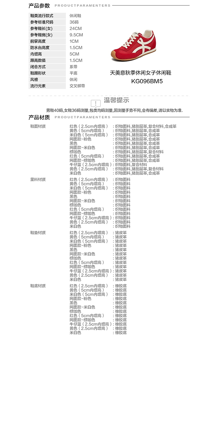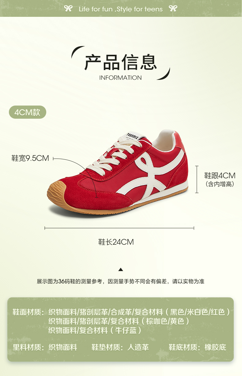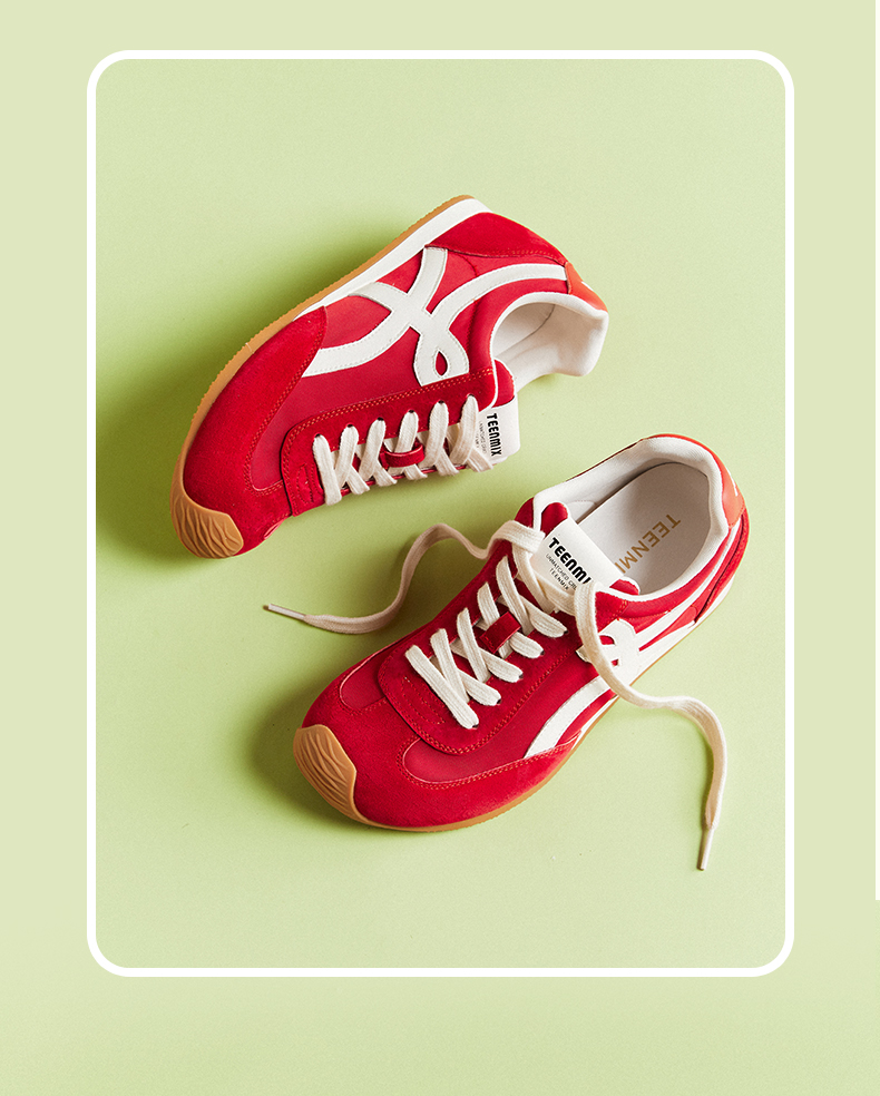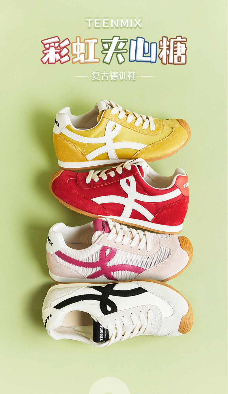 【云粉节】BF楼天美意吴宣仪彩虹夹心糖厚底内增高复古红色阿甘德训鞋女秋运动鞋KG096DM5吊牌价999活动价500