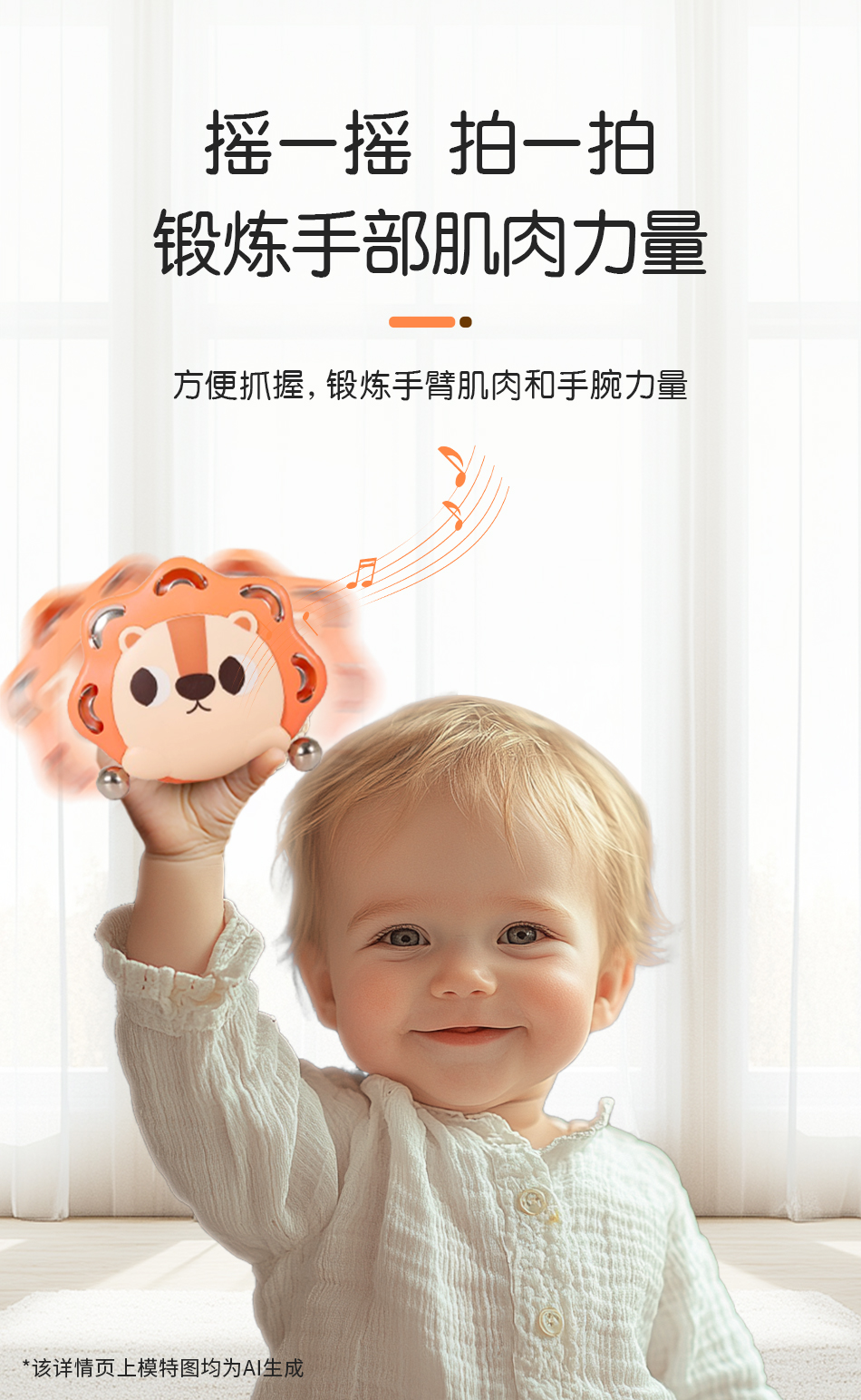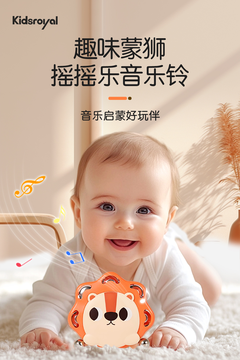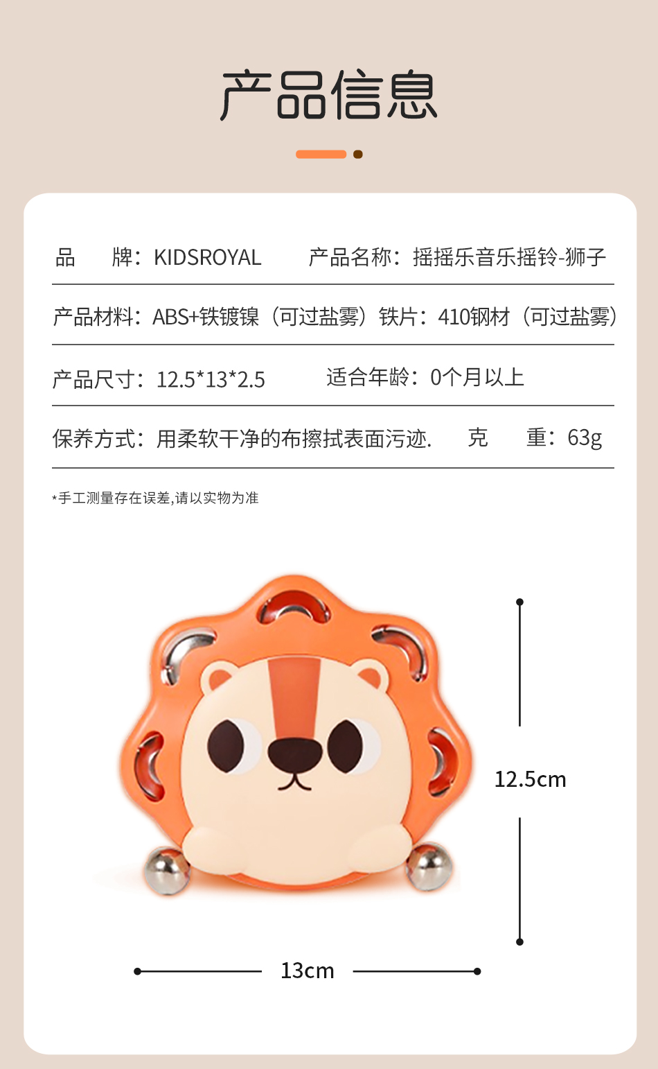KIDSROYAL 婴儿玩具-摇摇乐音乐摇铃-狮子 DM6600-2(0个月以上)