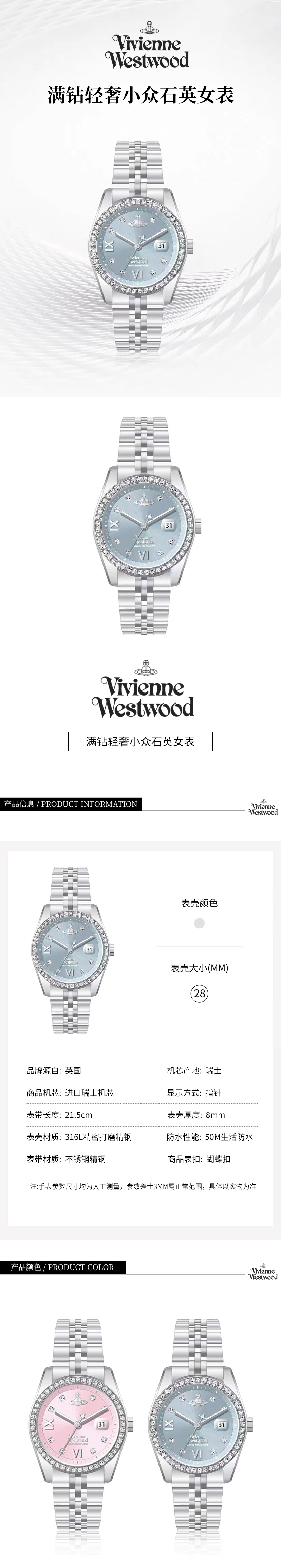 【春节不打烊】Vivienne Westwood西太后新年限定时尚满钻轻奢小表盘商务钢带石英手表