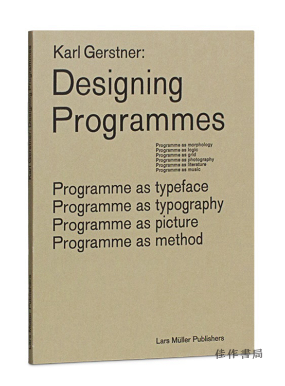 Designing Programmes was first published in 1964; in 2007 Lars Mu?ller Publishers launched a re-designed version. This year’s release of Designing Programmes is a facsimile of the original edition of the book, designed by Karl Gerstner.