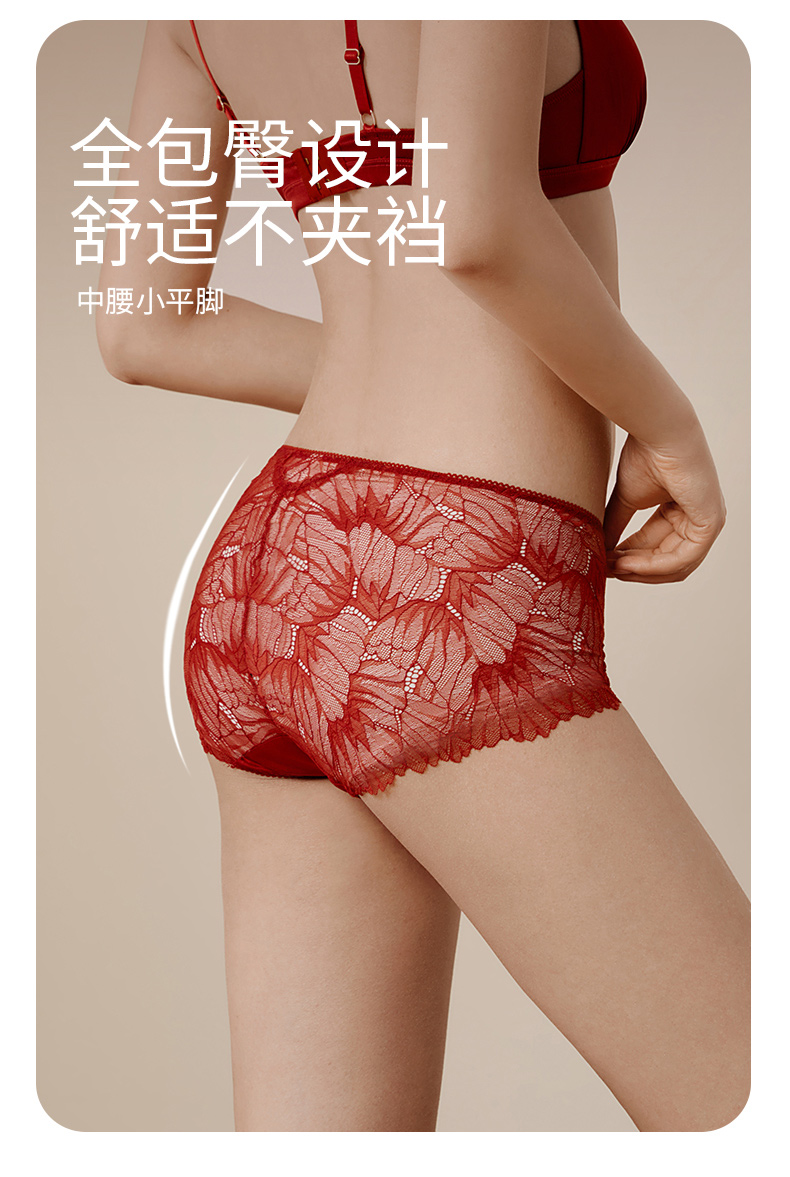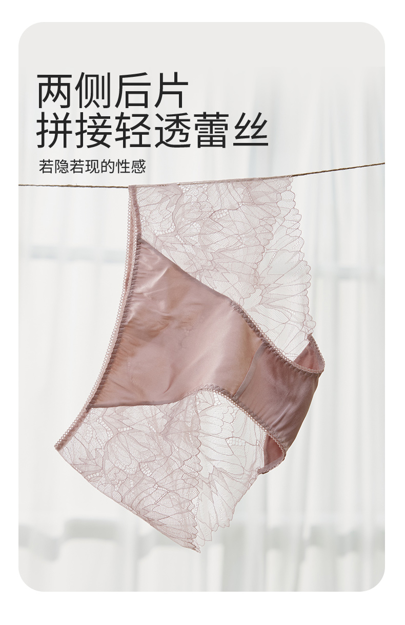 金三塔桑蚕丝中腰内裤女轻奢轻透蕾丝性感包臀提臀舒适内裤女(私密物品不支持退换货) NZFFD203