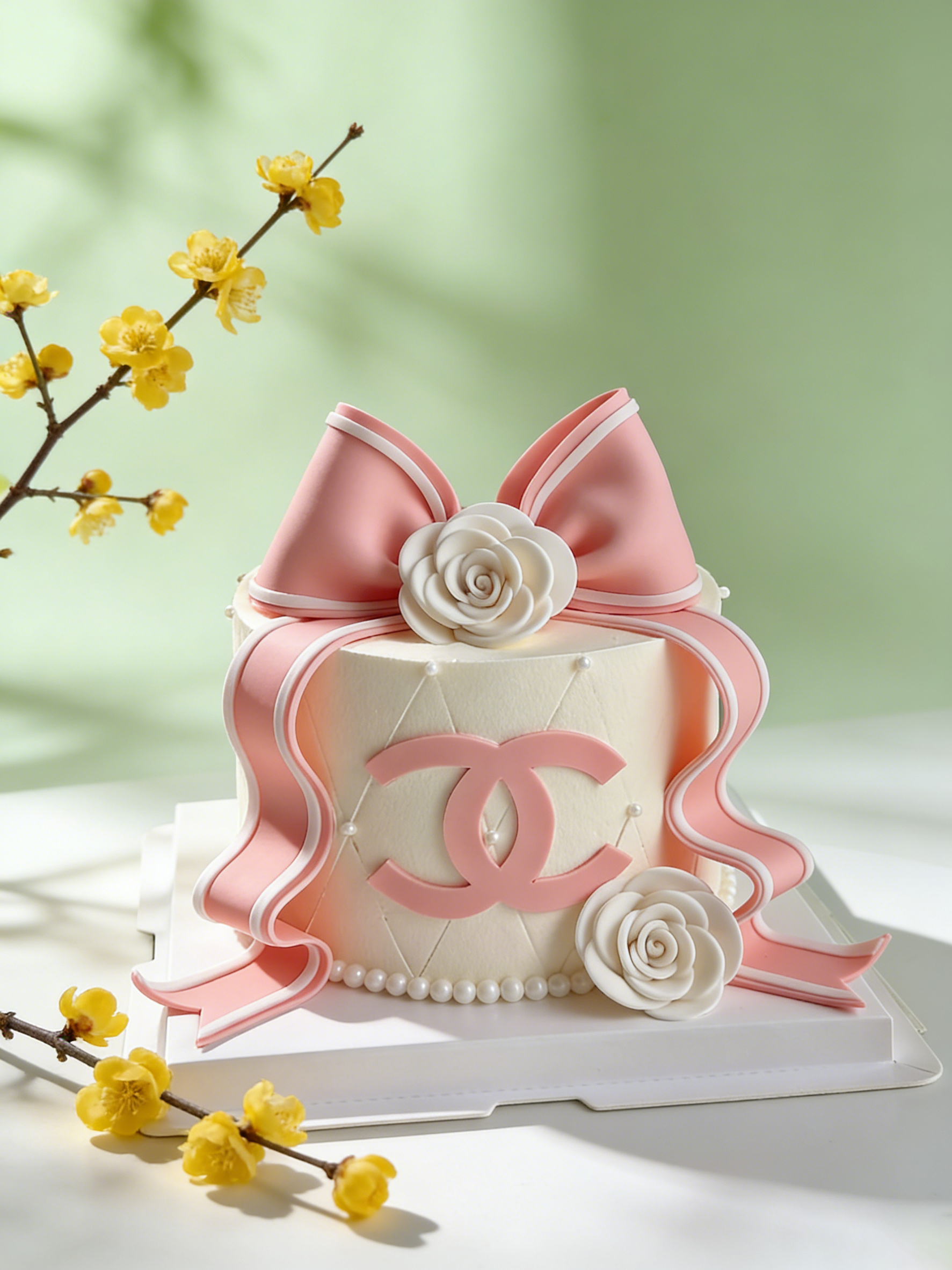 女神香奈儿粉系翻糖蝴蝶结蛋糕