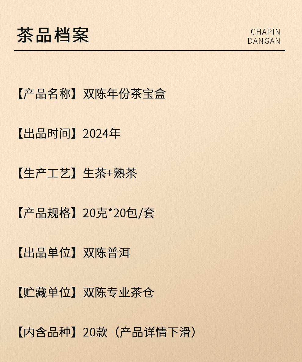 双陈普洱品鉴大赛双陈年份茶宝盒20克*20包/套【赢取2024“双陈杯”百万大奖】