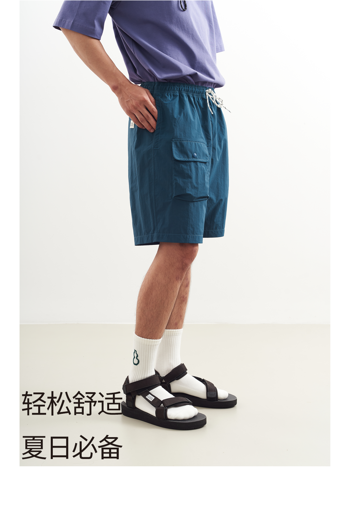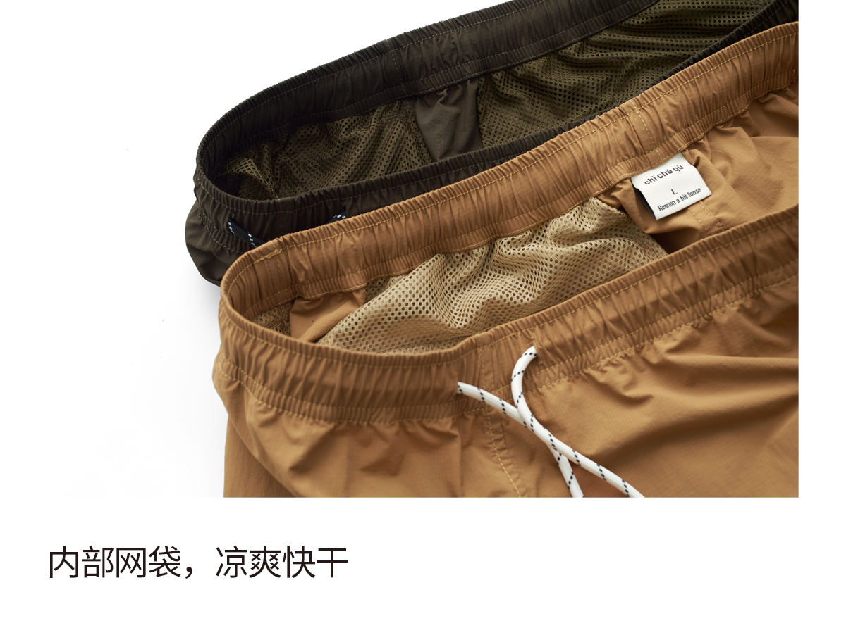 吃茶去chichaqu2024抽绳沙滩休闲短裤山系夏季户外宽松男女百搭