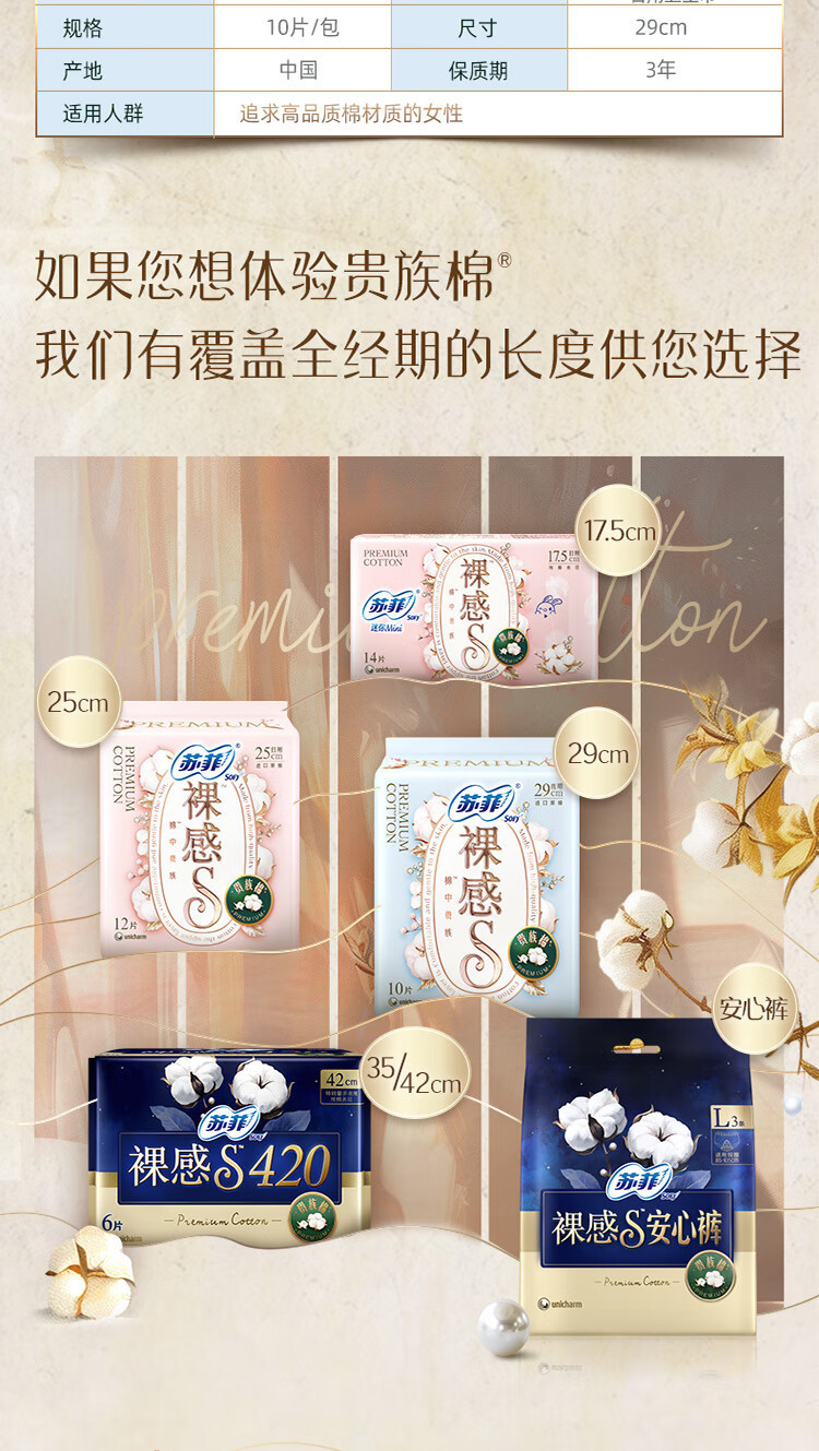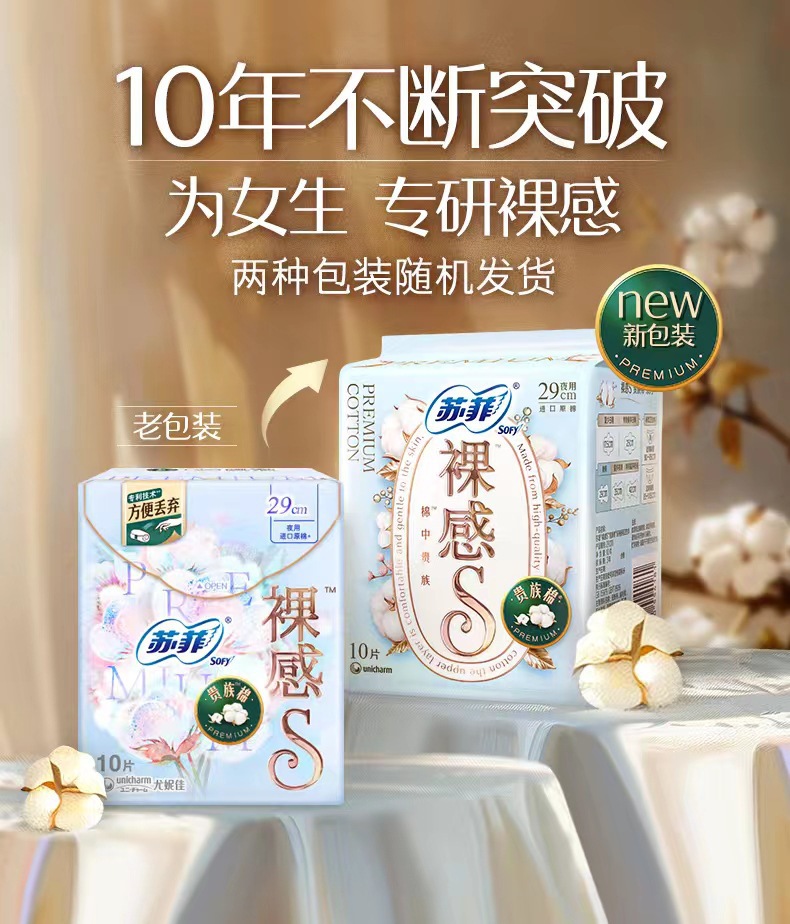 苏菲卫生巾裸感s夜用290mm*12片加长款极薄透气姨妈女整箱防漏