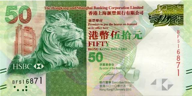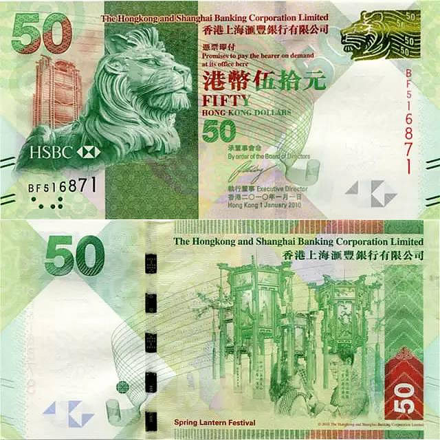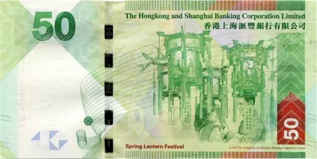 我国首张元宵流通钞,面值50港元,由香港上海汇丰银行发行,属我国香港特区的法定货币。