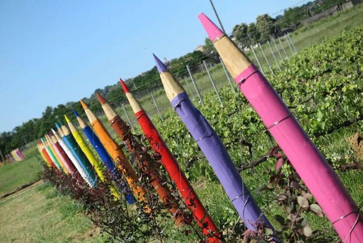 并且,庄主始种心怀大义,酒庄每年都向当地小学捐赠书包、铅笔等学习用具。天性浪漫的二人,摈弃以往旧派的古板陈旧,大胆将绚丽色彩应用到酒箱/酒盒上,还童心未泯地购置许多可爱的巨型铅笔摆件,这些铅笔均由环保材料制成,成为庄内一道吸睛的靓丽风景线。