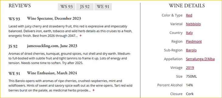 均价6折!WS93高分!马卡里奥巴罗洛红葡萄酒 Pico Maccario Barolo DOCG 2019