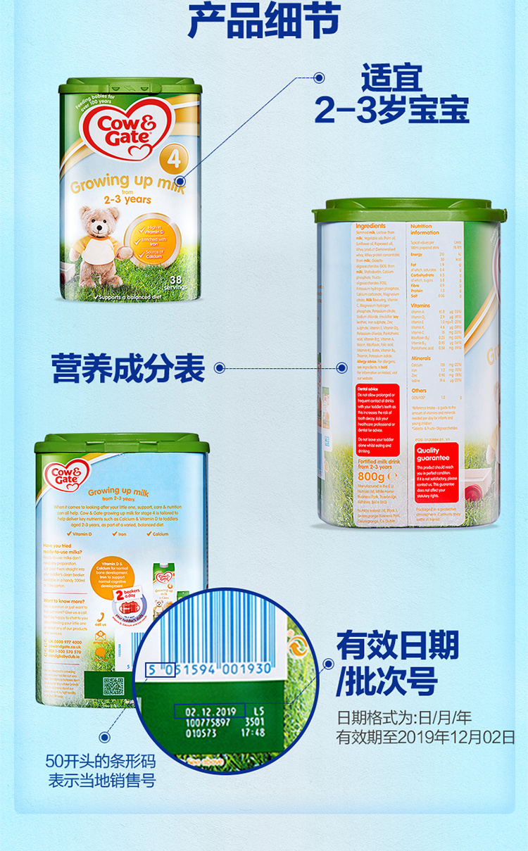 【保税仓】英国牛栏婴儿奶粉4段800g(新包装)