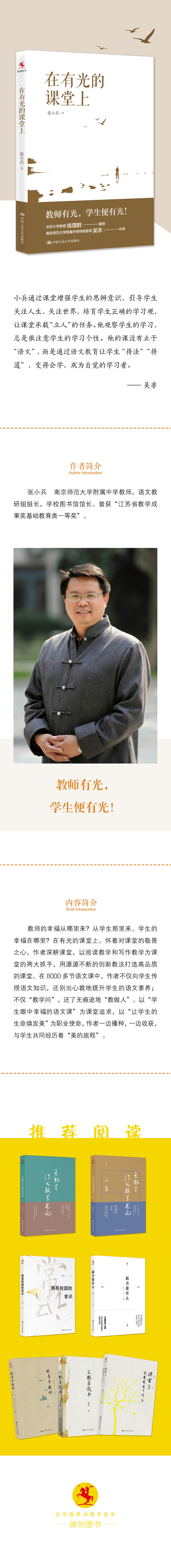 这是一本教学笔记选集,记录了作者在教学过程中的经历和感悟。以难忘的学生、师生的问答、教学中遇到的问题与解决问题的方法,以及教育教学反思等为主要内容,站在学生的终生发展和民族的未来角度,反思自己的教学行为。突出教育教学中的“慢”“自由”“思考”“激发”等关键词,期待为学生营建一个“有光的课堂”,让学生真正体会到学习的乐趣。