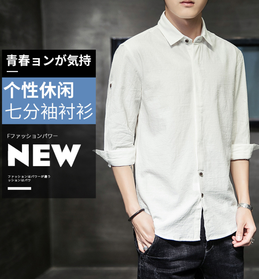 【服饰鞋包】夏季七分袖日系休闲宽松立领亚麻衬衫