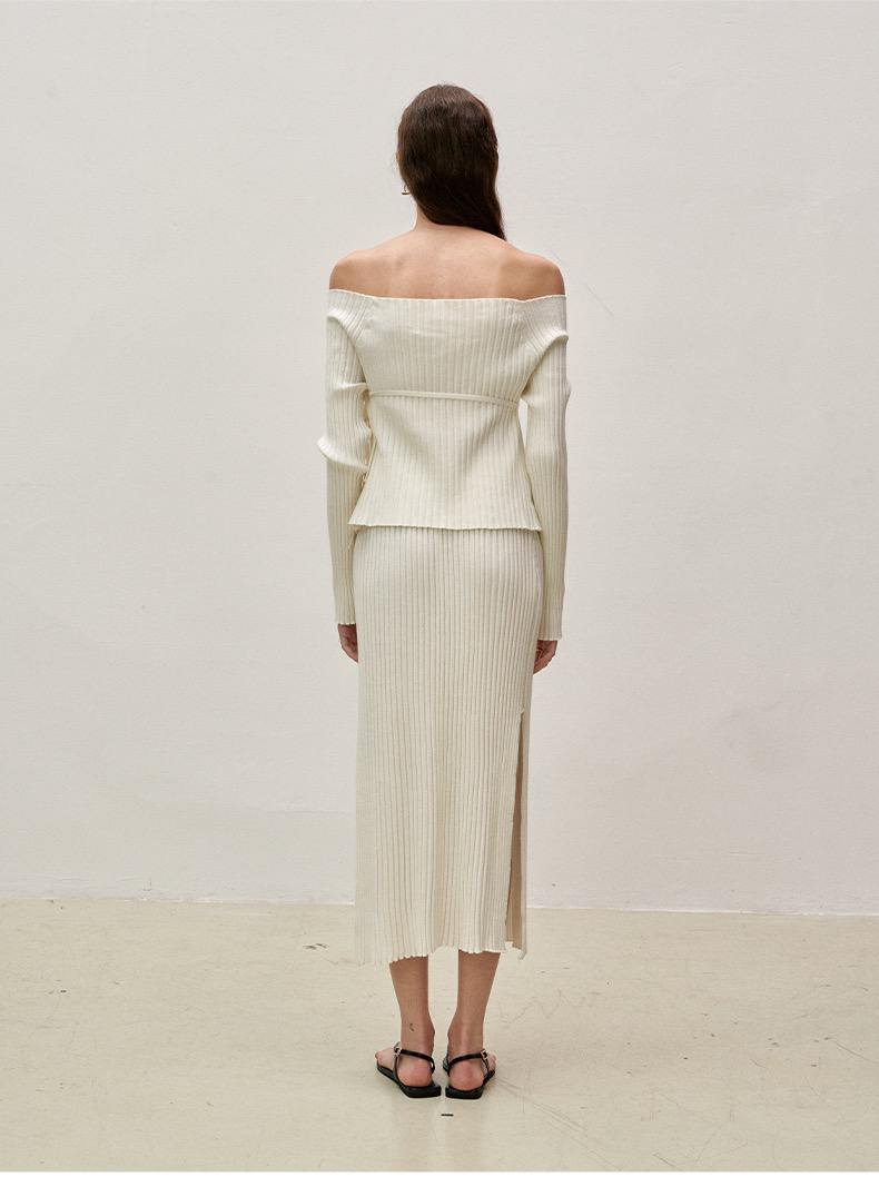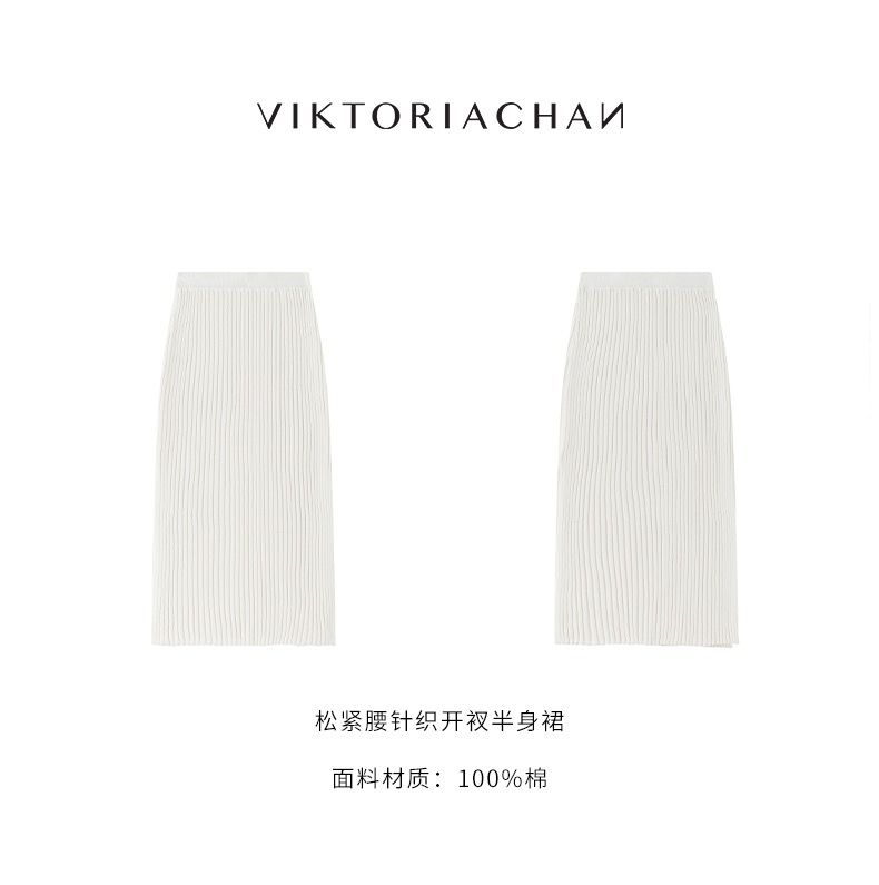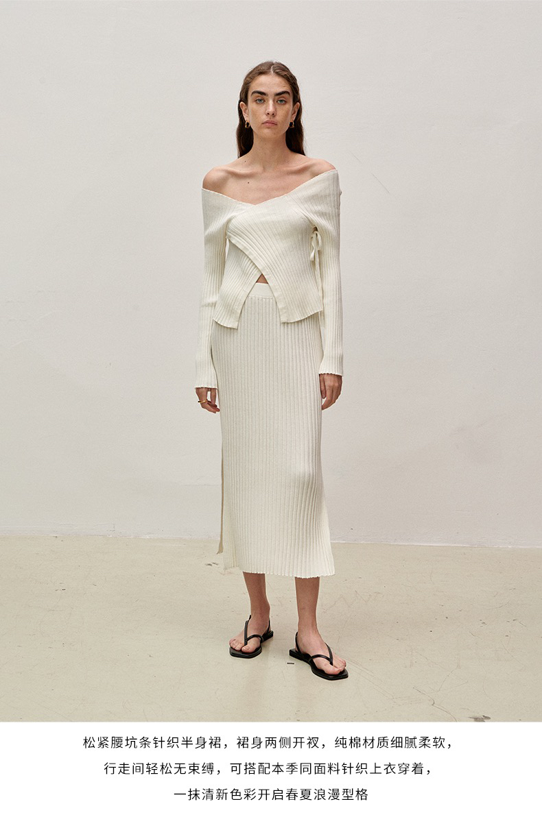 Viktoria Chan | SS23002 Shelby knit skirt- midi [ 针织半裙 浅粉 / 白 ]
