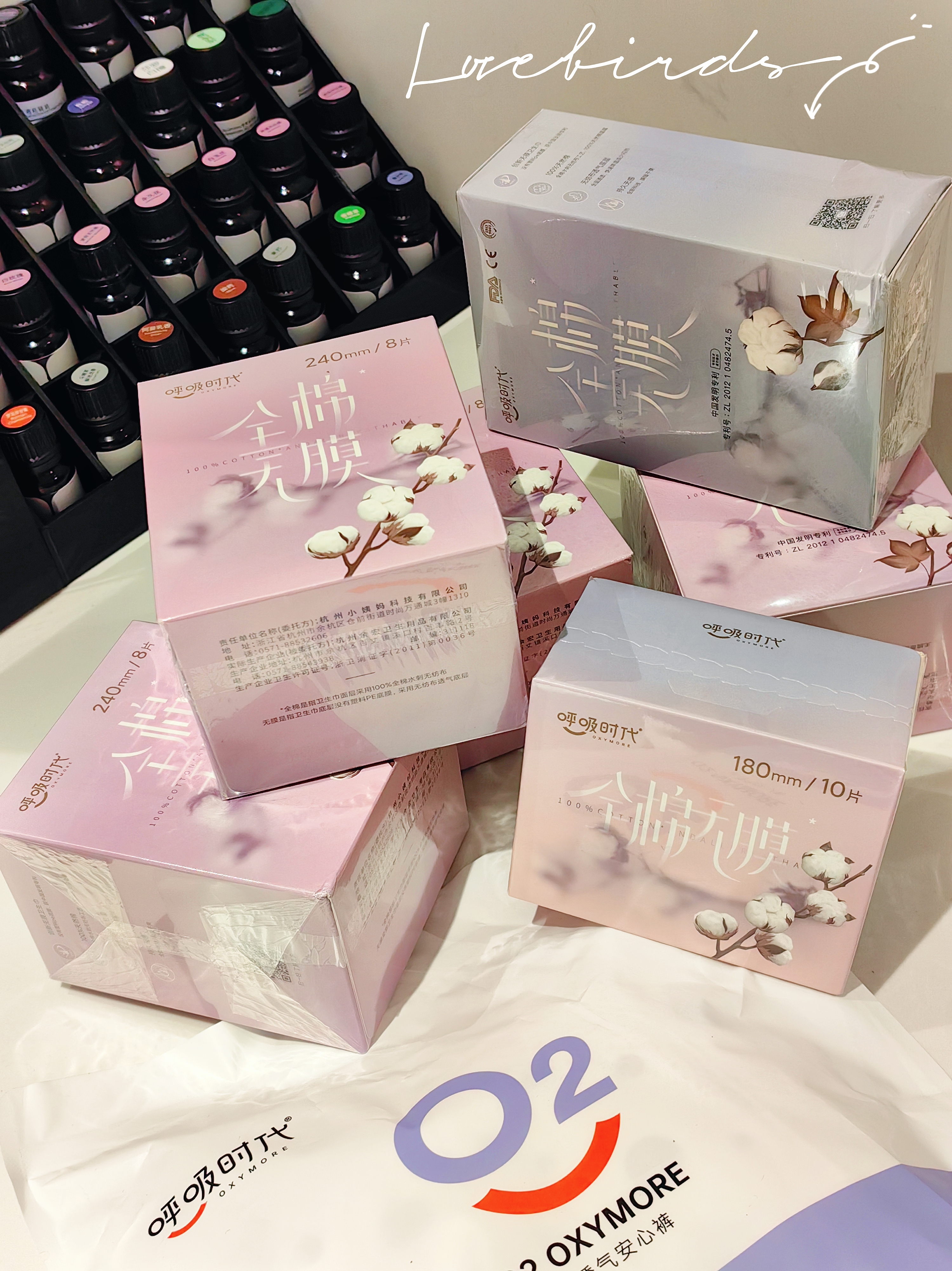 OXYMORE呼吸时代,虽然是一个国产的新品牌,但非常贴心,一点不输!最大的优点就是去除了卫生巾底部的防渗塑料PE底膜,让透气性得到了质的提升,而且超薄无感,全棉贴护,让身体自由呼吸!