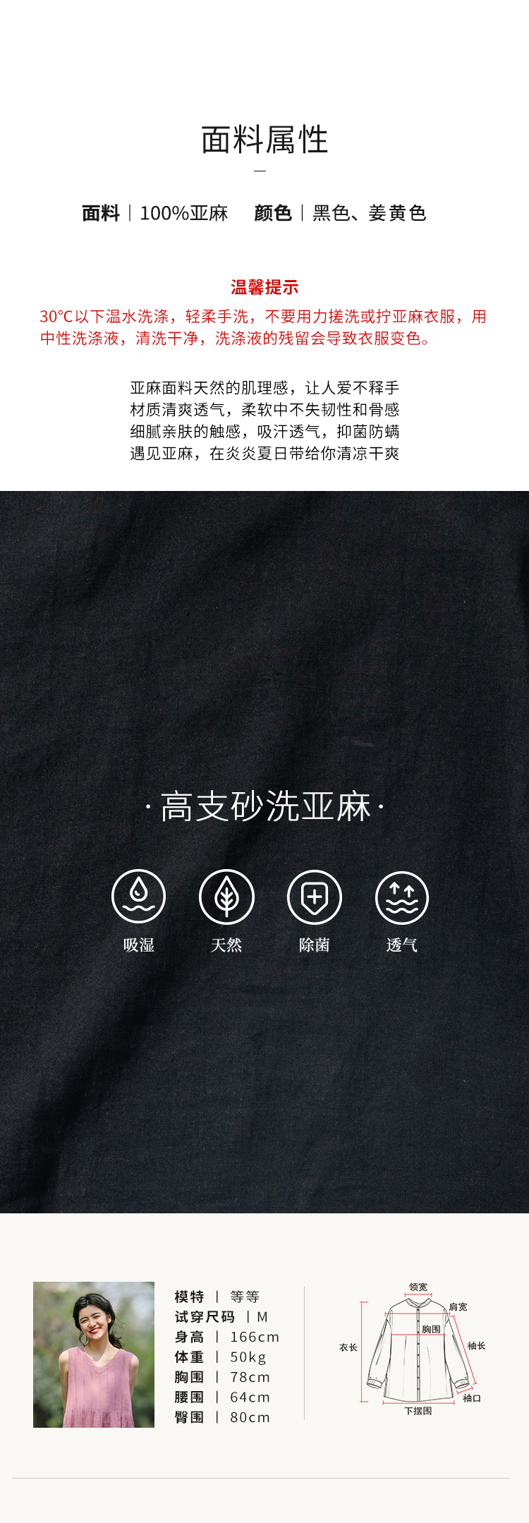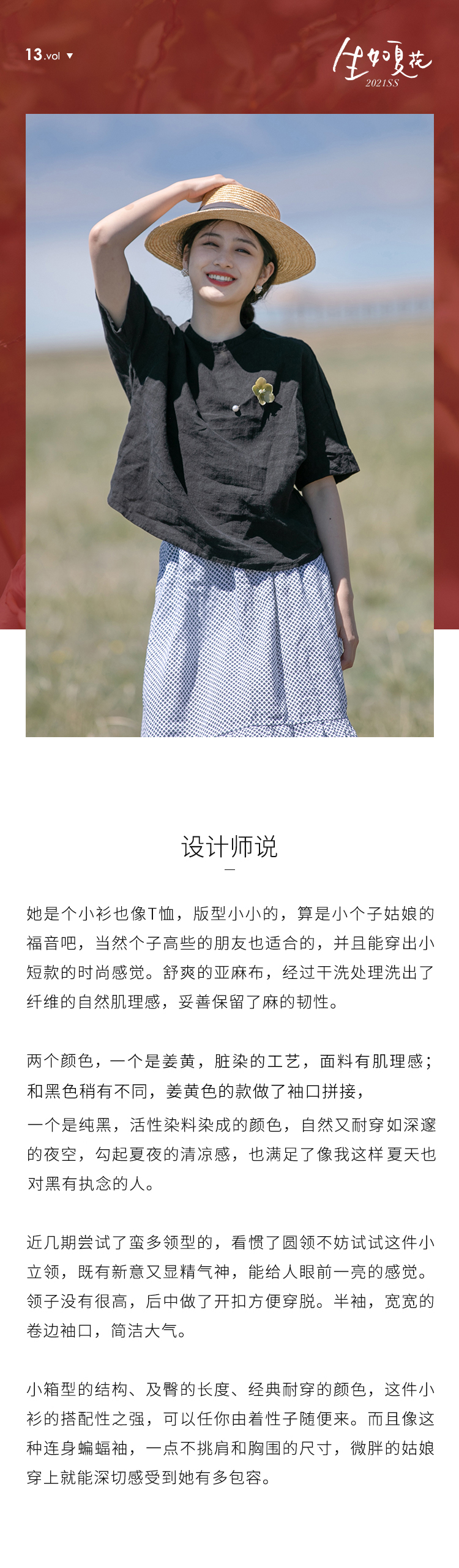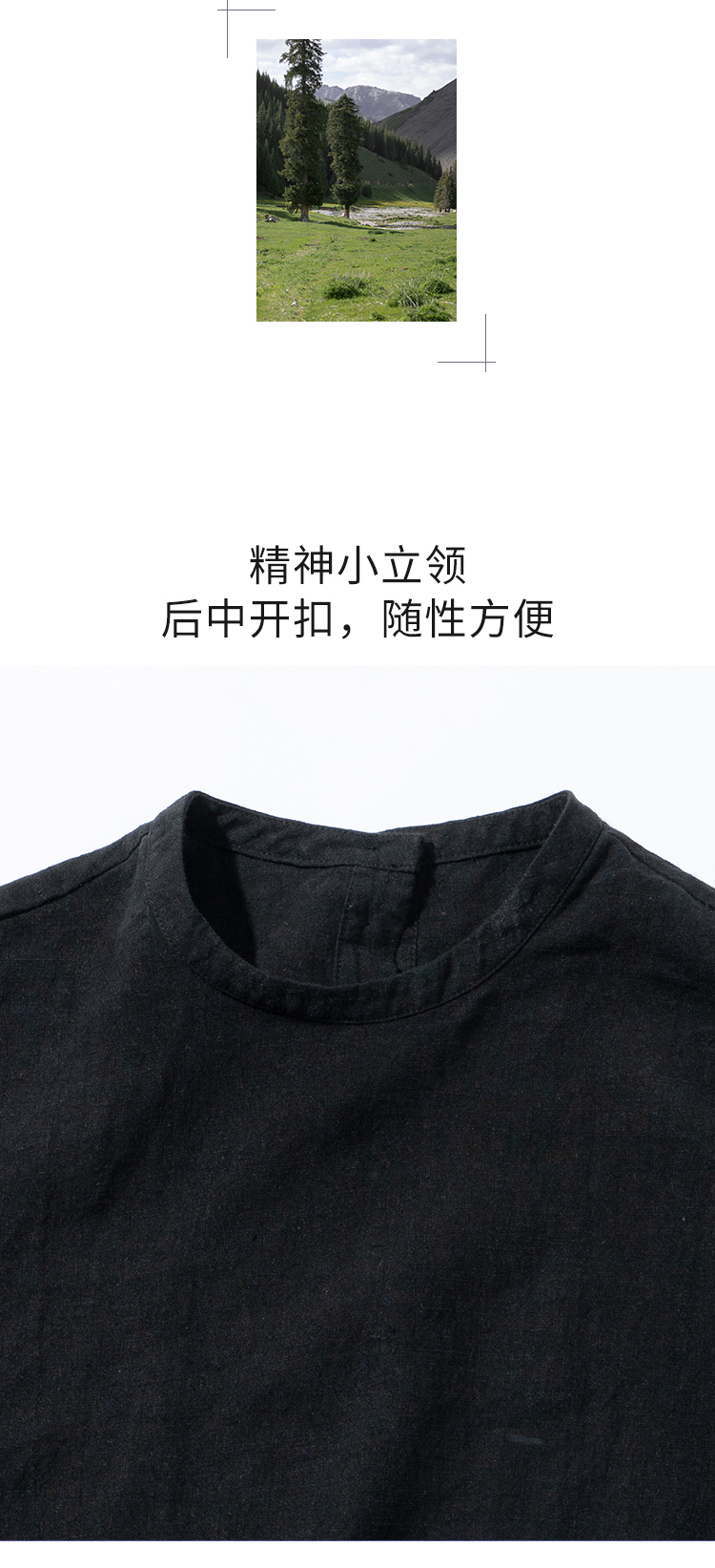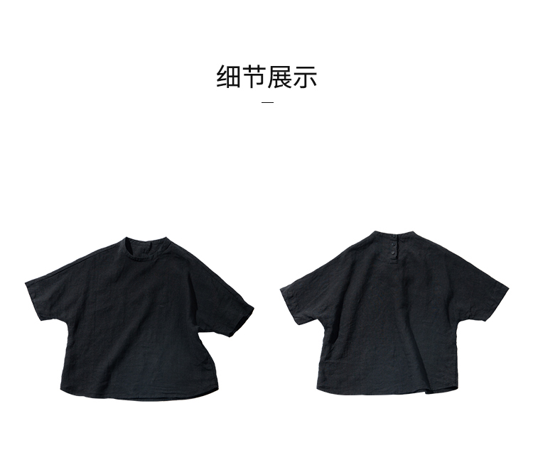 绽放346-595朵春季新款复古黑色立领短袖亚麻衬衫T恤文艺小衫上衣