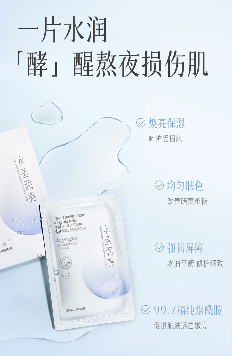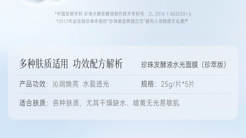 【79元到手20片!!!】京润珍珠补水面膜2.0 专利珍珠水解发酵液 深层补水 保湿修护 舒缓泛红敏感肌