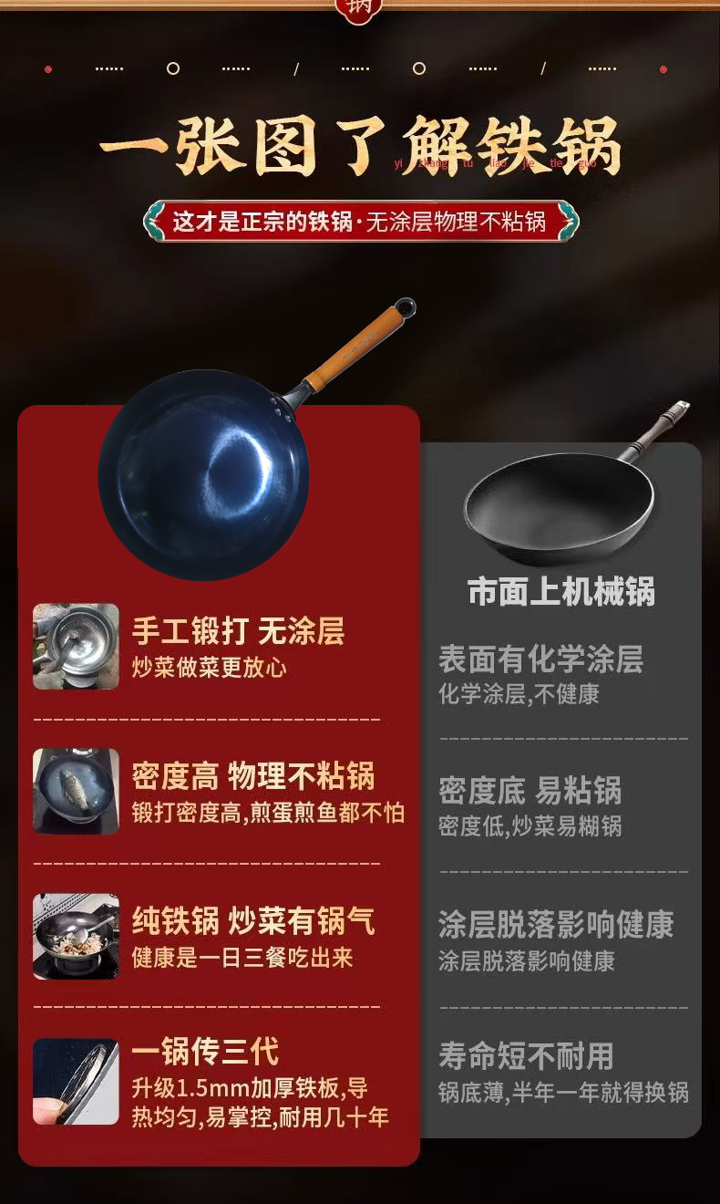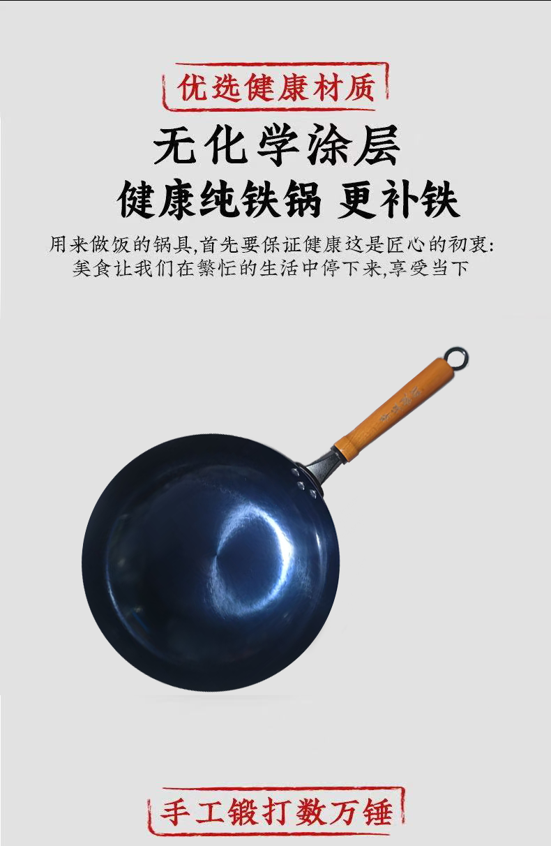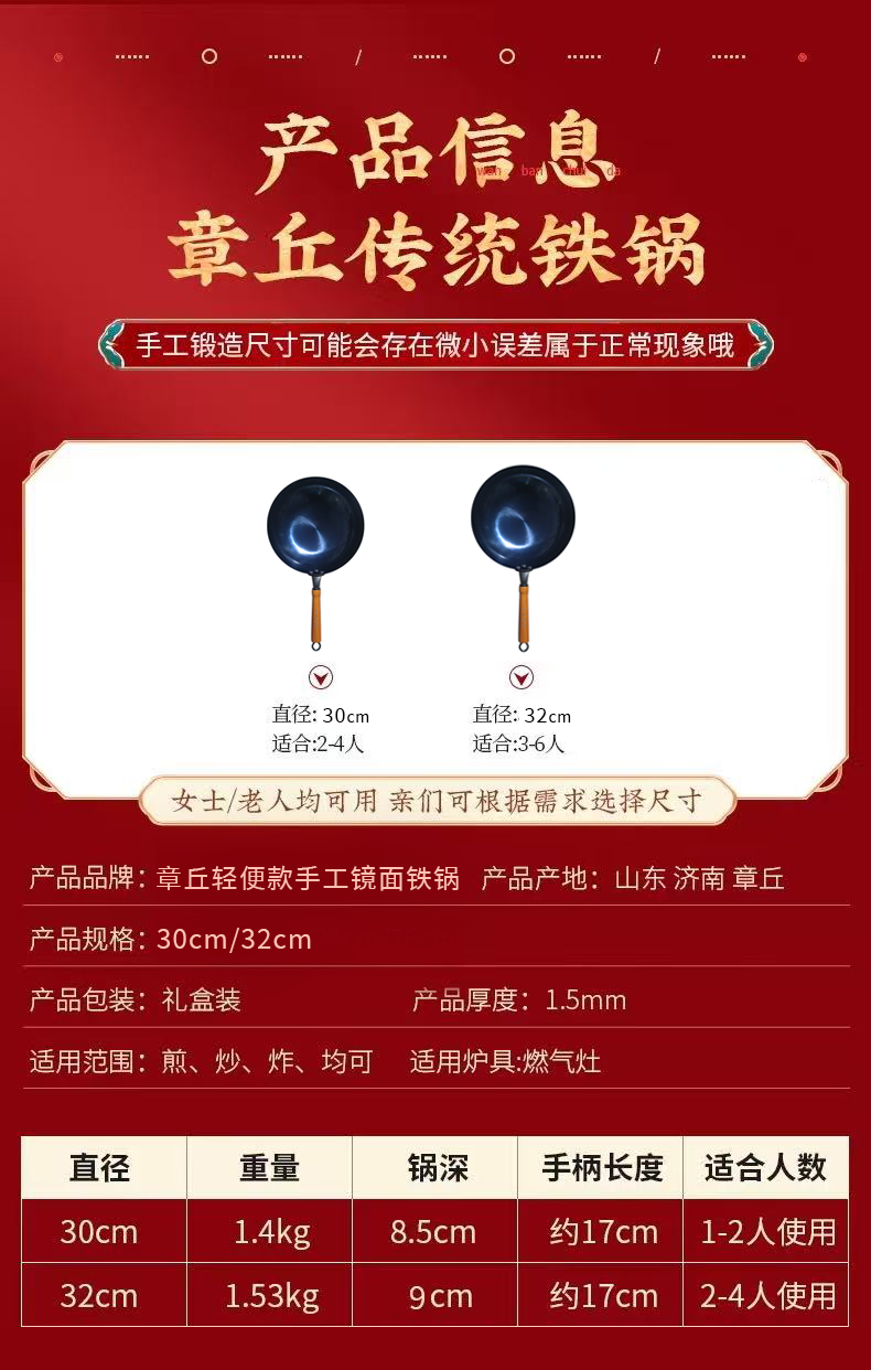 【章丘铁锅】章丘轻便款手工镜面铁锅