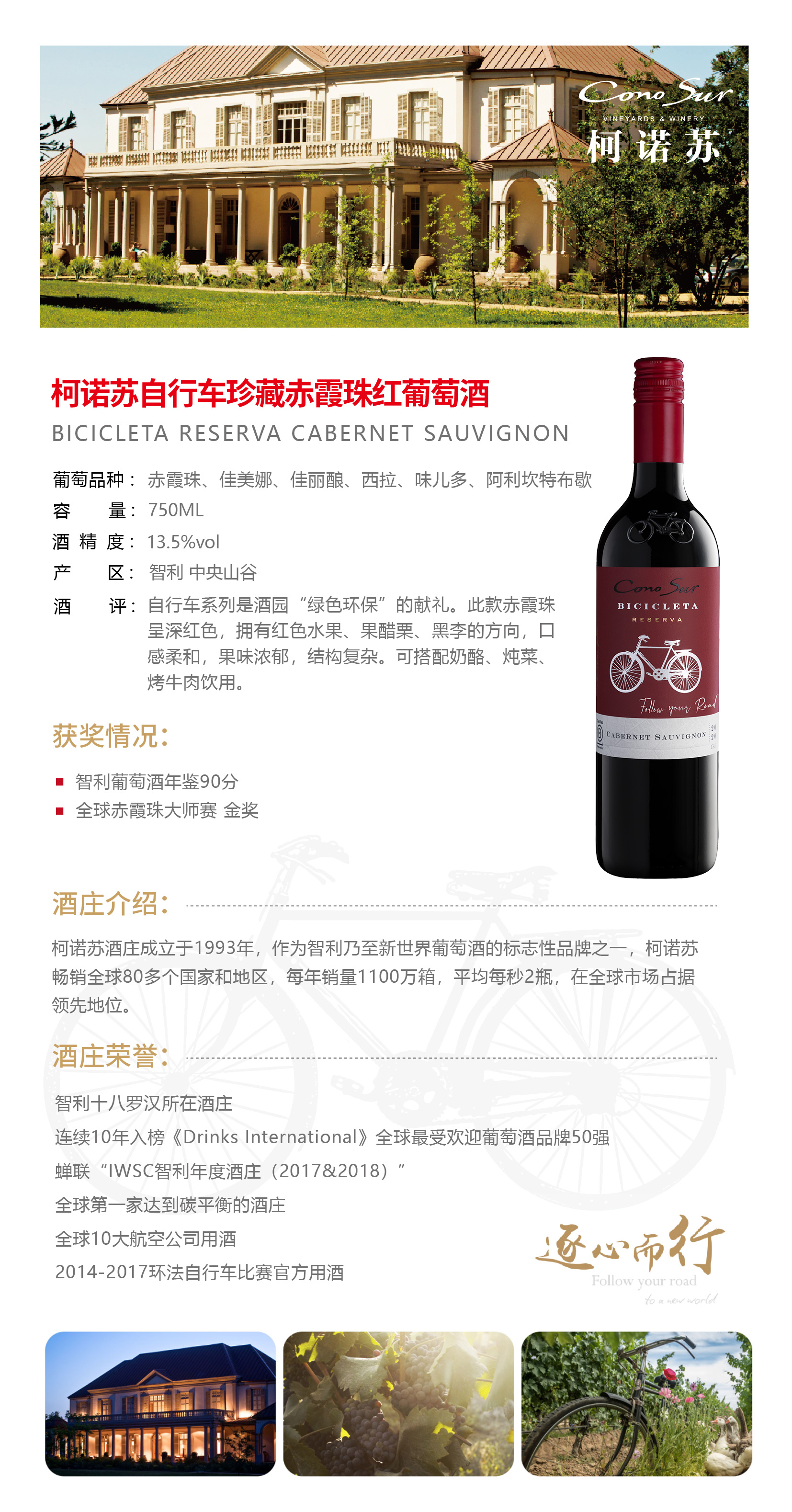 柯诺苏珍藏赤霞珠红葡萄酒(自行车系列) 750ml