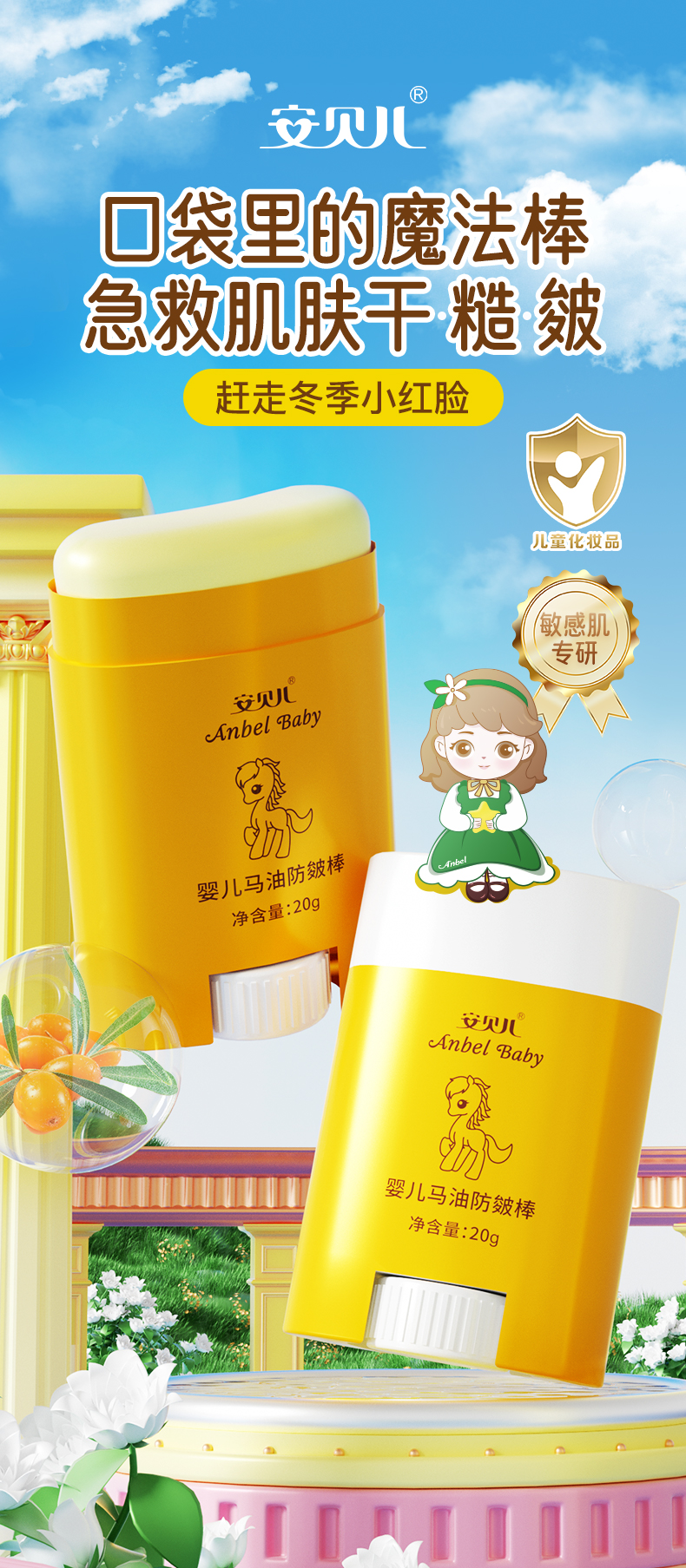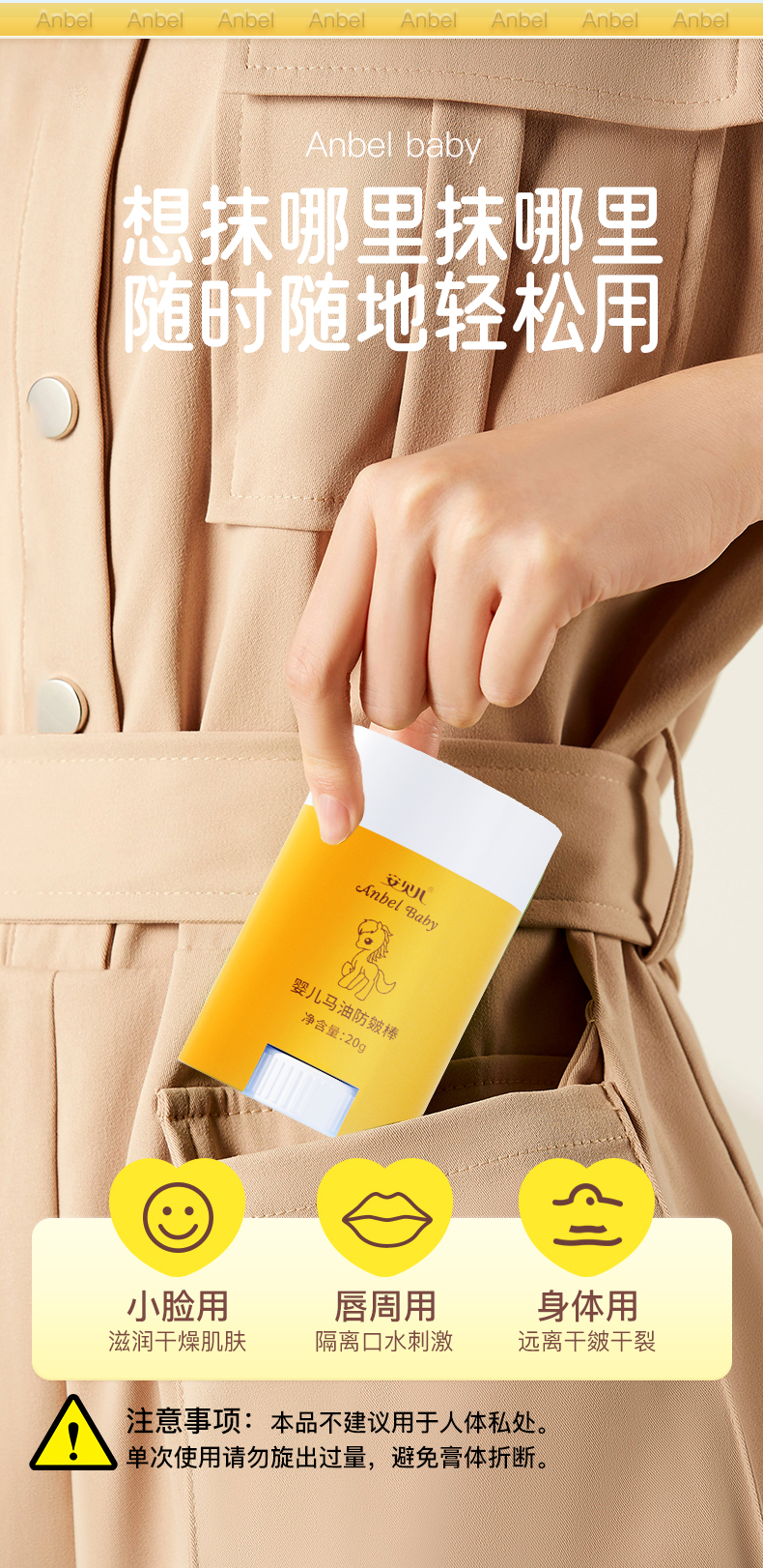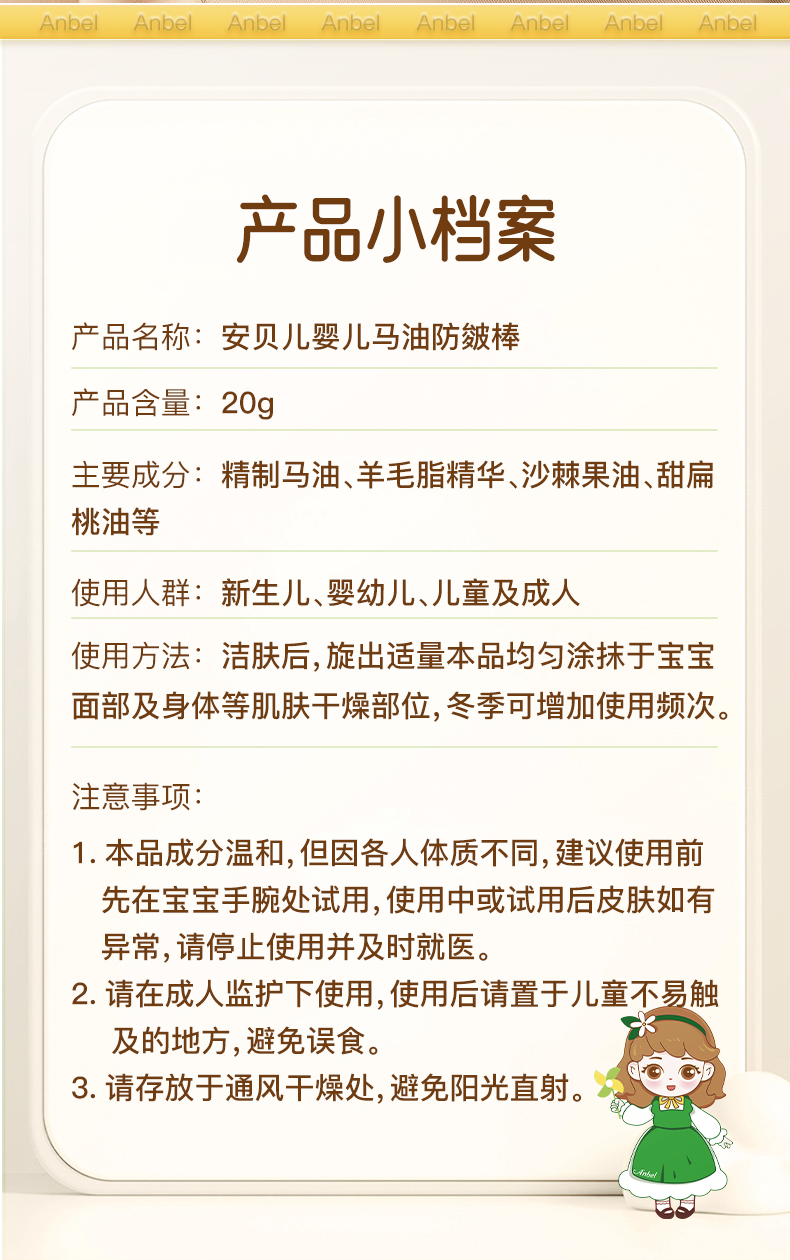 安贝儿 婴儿马油防皴棒20g