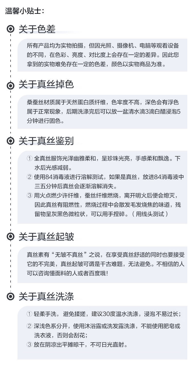 面料:100%桑蚕丝