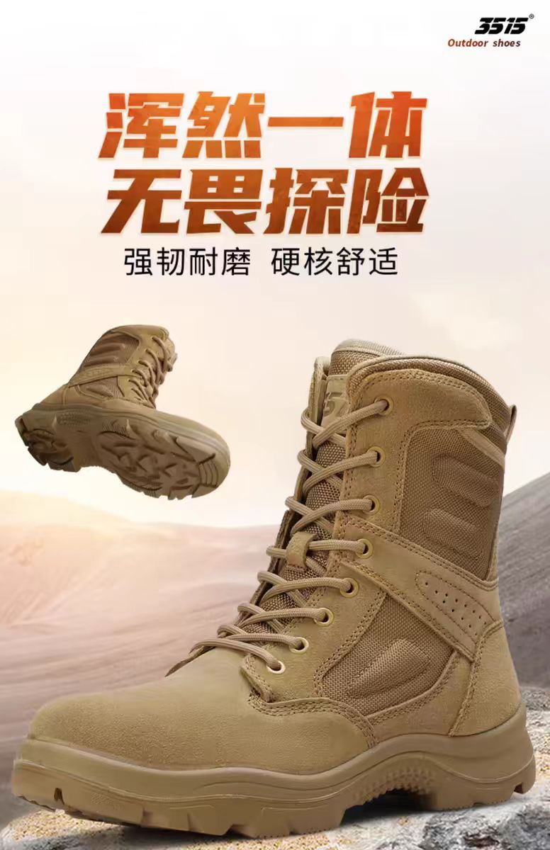 【3515强人工装靴】高帮反绒牛皮橡胶底户外工装靴子3515