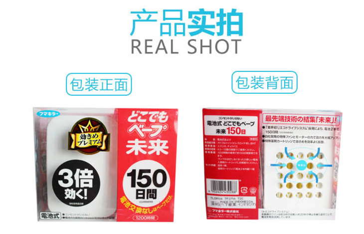 【天然植物制成的驱蚊】日本未来VAPE婴儿童电池驱蚊器 家用台式防蚊器150日 无味静音 正装 替换装