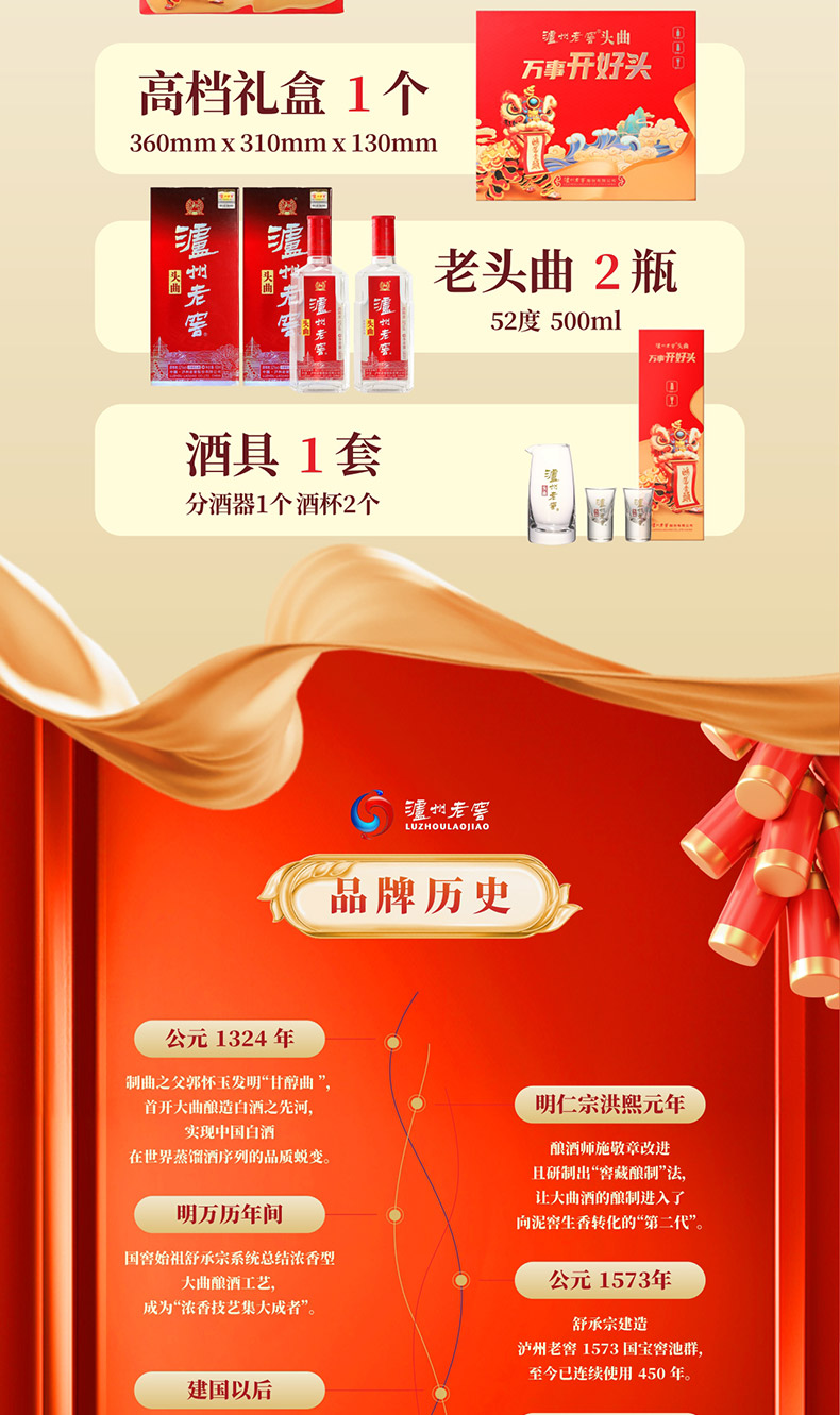【酒厂直营】52度泸州老窖头曲万事开好头500ml*2礼盒装(内含酒具) 泸州老窖官方旗舰店