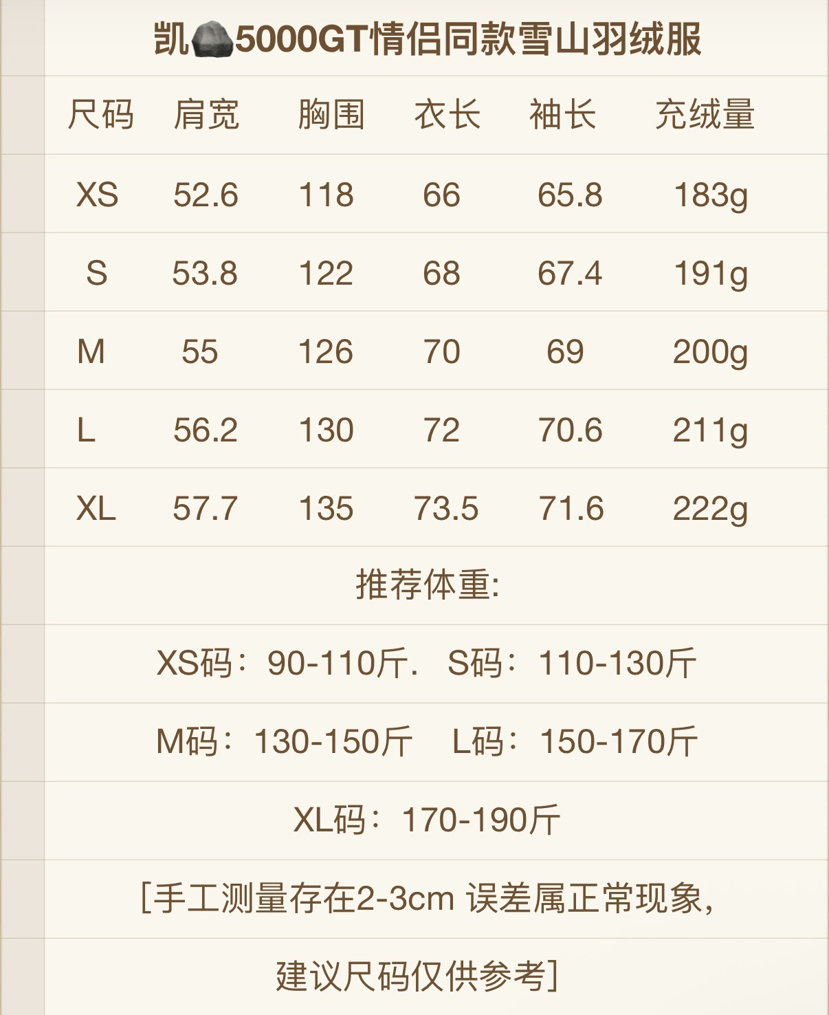 基本上按照体重和身高的双重推荐选择就可以,卡码拍小能穿,拍大宽松!注意!洗涤尽量干系!避免手洗和洗衣机造成的摩擦钻绒!并且面料有一定的防水效果,不需要经常洗涤!