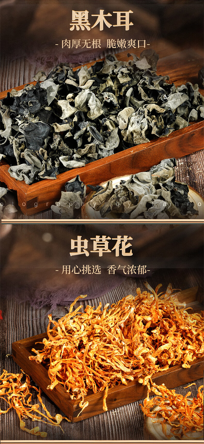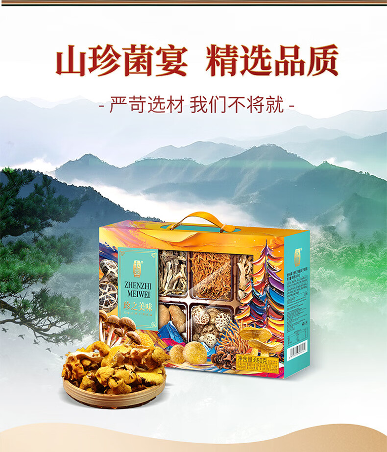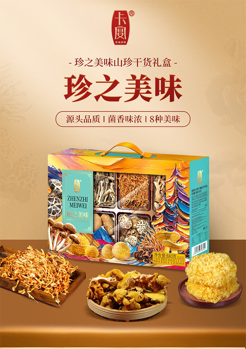 卡宴珍之美味山珍礼盒 菌菇干货 虫草花猴头菇黑木耳花菇组合880g