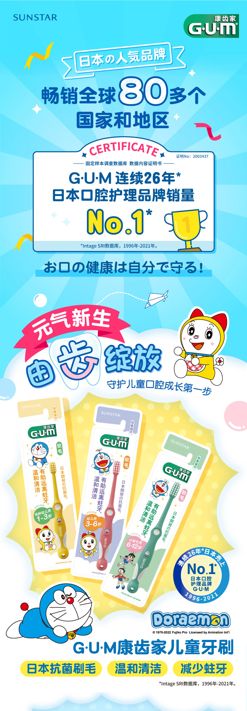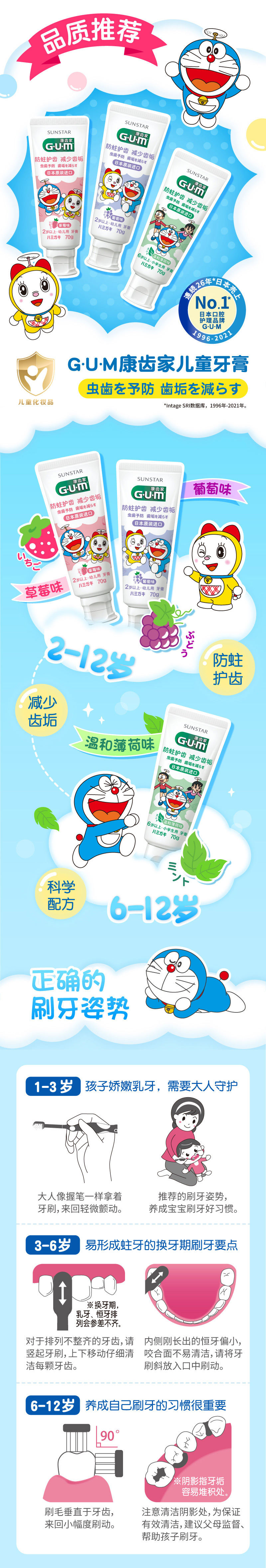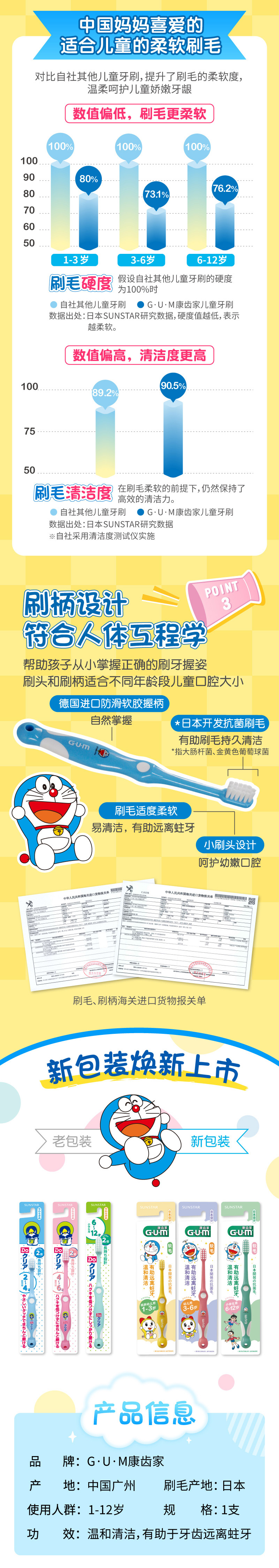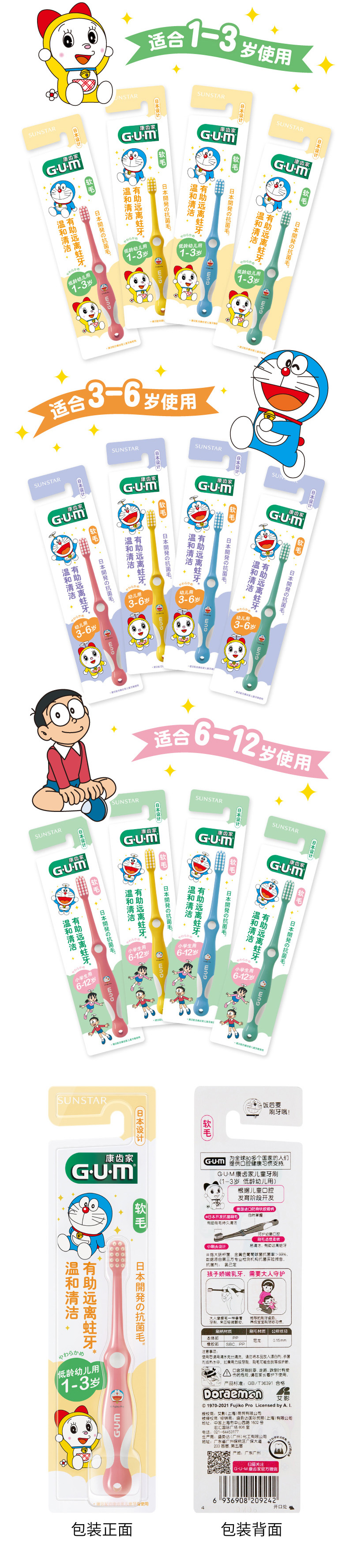 【品牌直发】【3支装】日本GUM康齿家婴幼儿儿童牙刷口腔护理超软刷毛缓解牙龈炎1-3岁 3-6岁 6-12岁