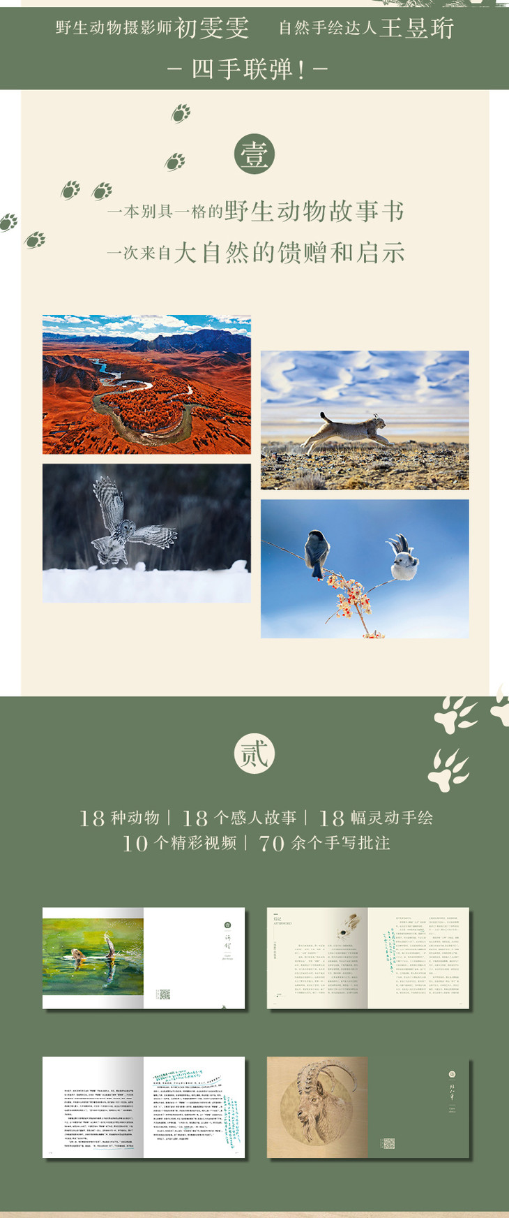 初雯雯撰写野生动物的故事并拍摄精彩的图片,“水哥”王昱珩手绘并撰写批注,还可欣赏萌软可爱的动物视频——本书将带给你一个全新的阅读体验。