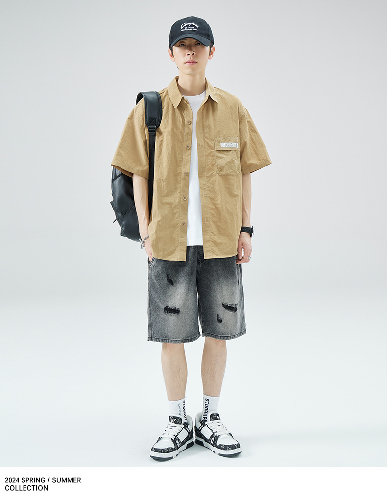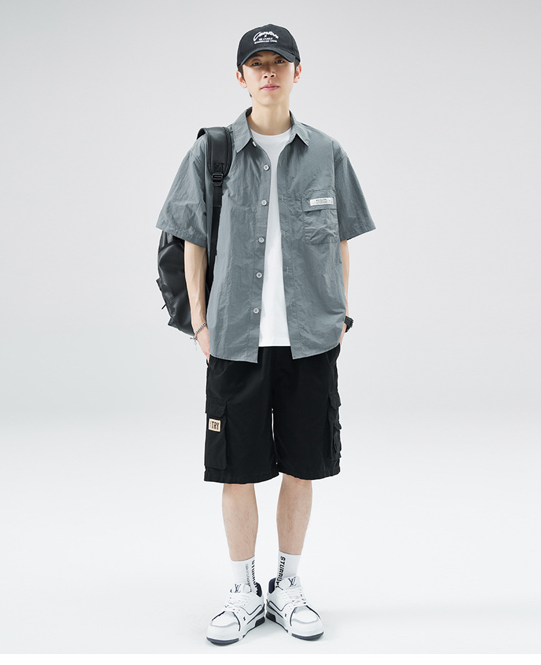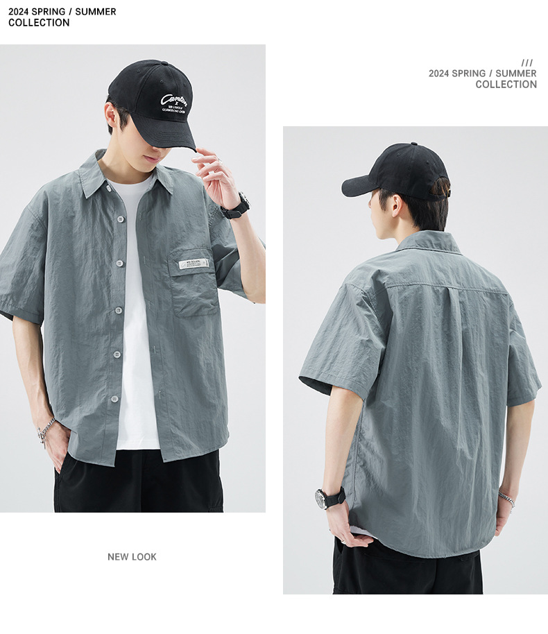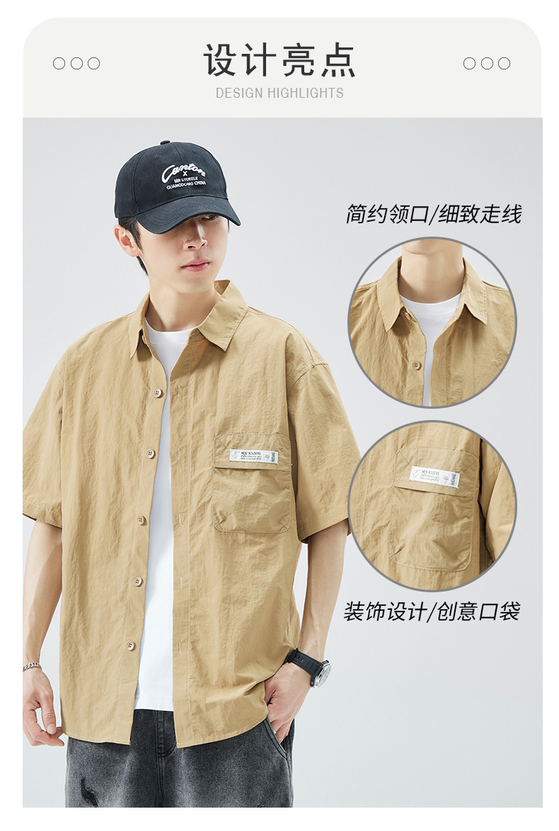 夏季衬衫男宽松透气短袖衬衣外穿男生薄款休闲上衣服 AY-D1109【AY-1109】