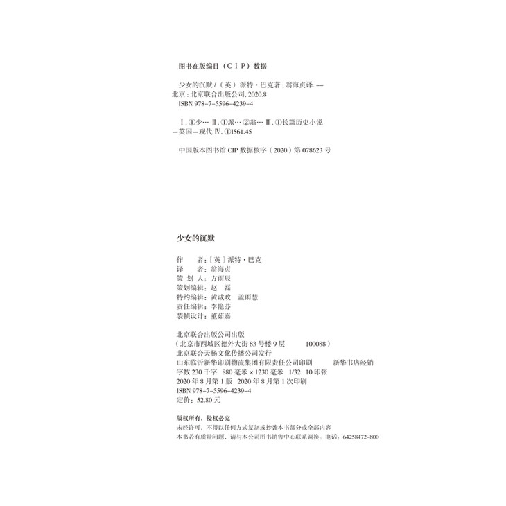 1. 本书派特·巴克是布克奖获奖作家,她的代表作《重生三部曲》曾入围布克奖40周年最佳小说,《少女的沉默》是其2018年出版的长篇小说新作,一经推出后便好评如潮,获得诸多权威媒体好评推荐。