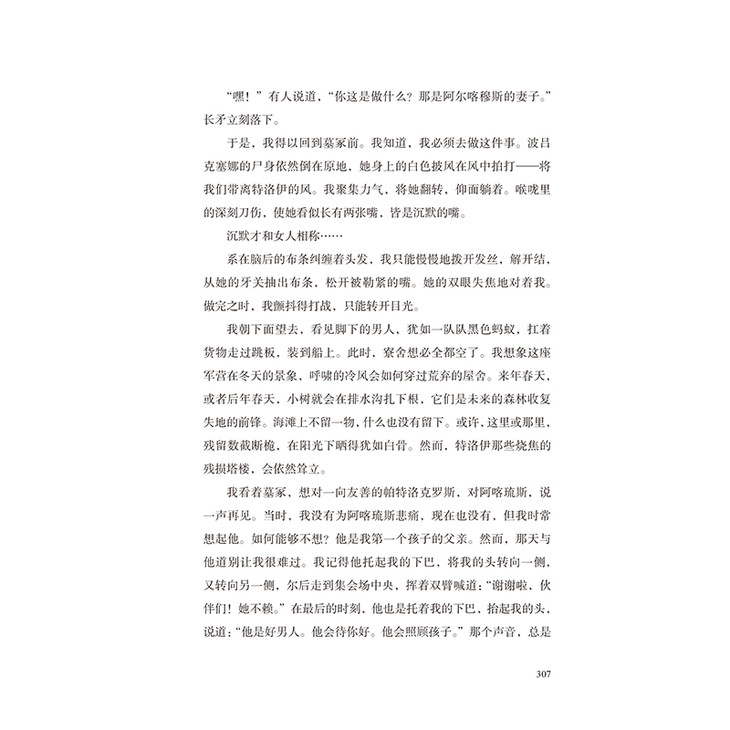 2. 本书以女性视角重述《伊利亚特》这一西方文学的中心作品,为在荷马笔下失语千年的女性发声,视角独特,文笔雄健。