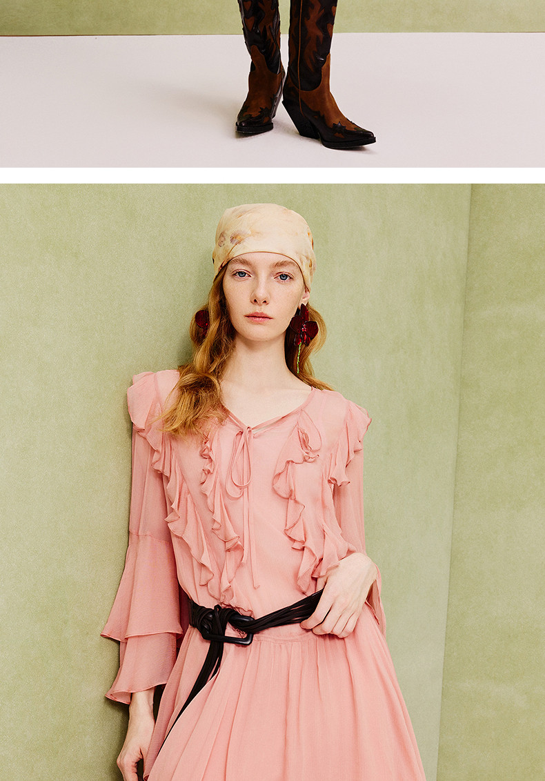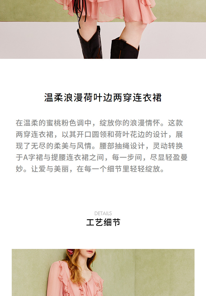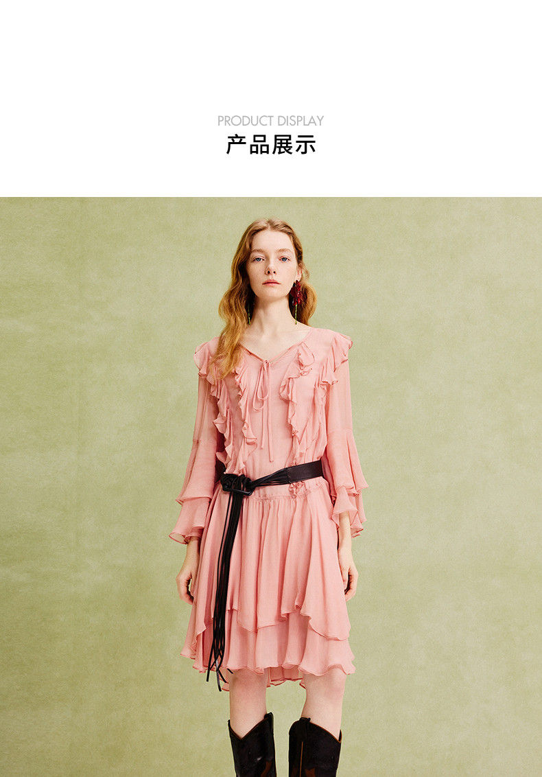 【商场同款】MAXRIENY温柔浪漫荷叶边连衣裙25夏复古法式长袖中裙(货号:MC86DR088)
