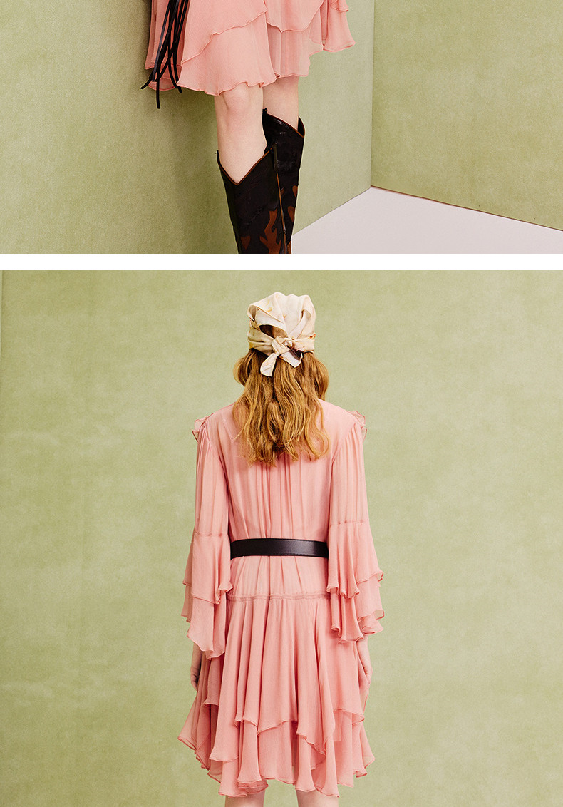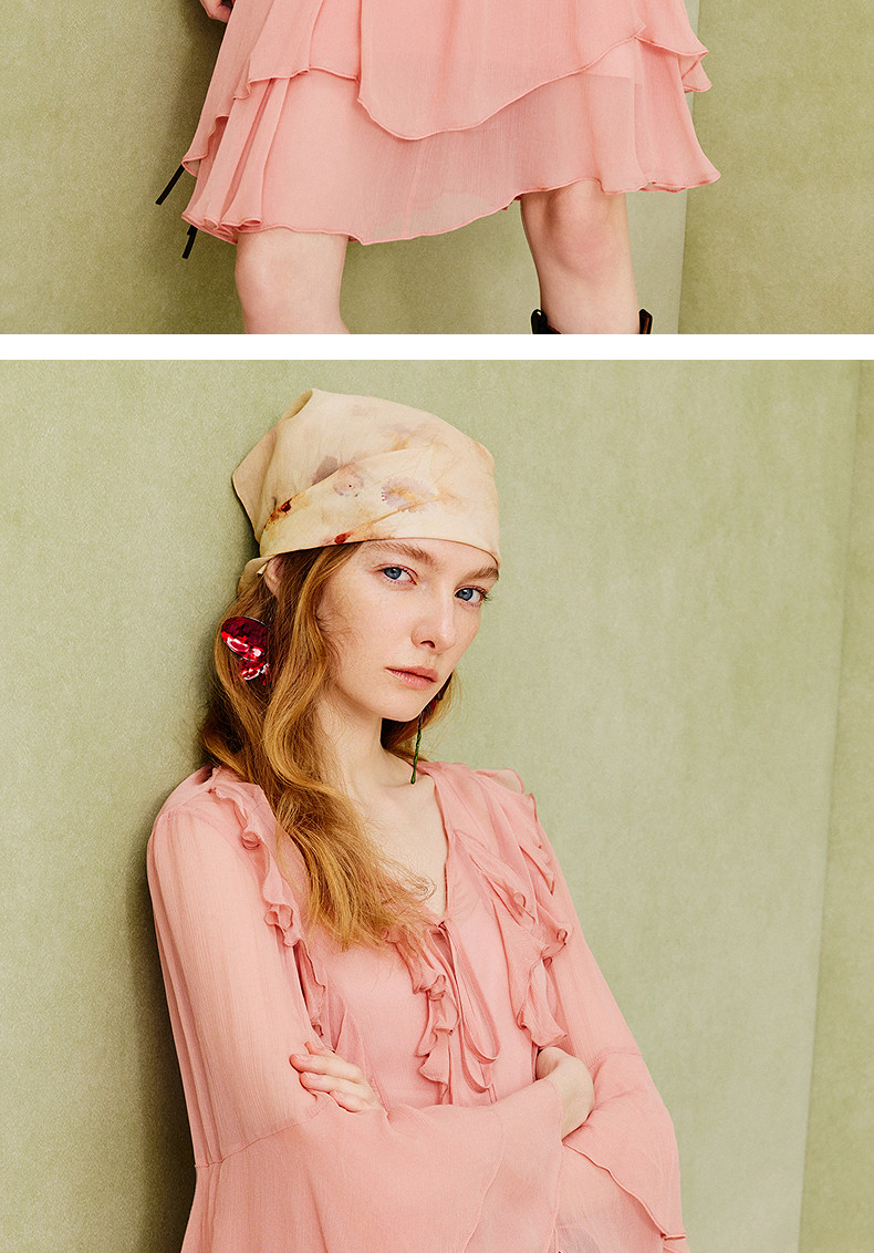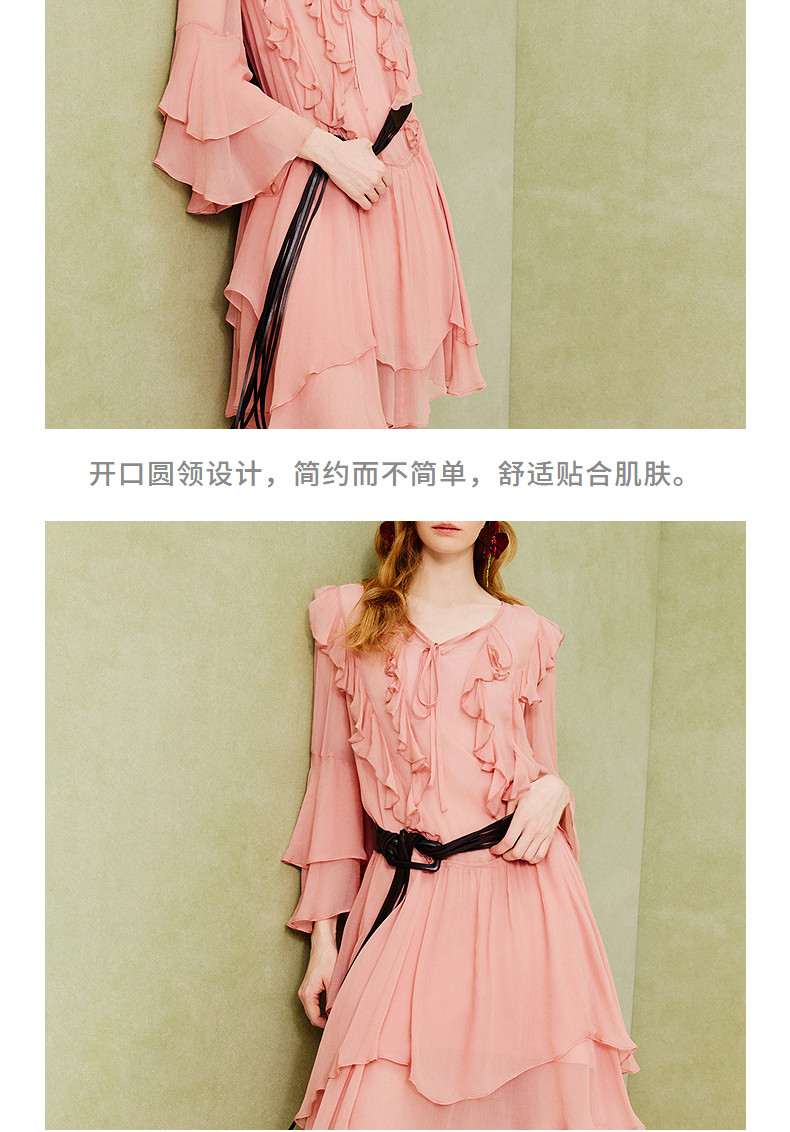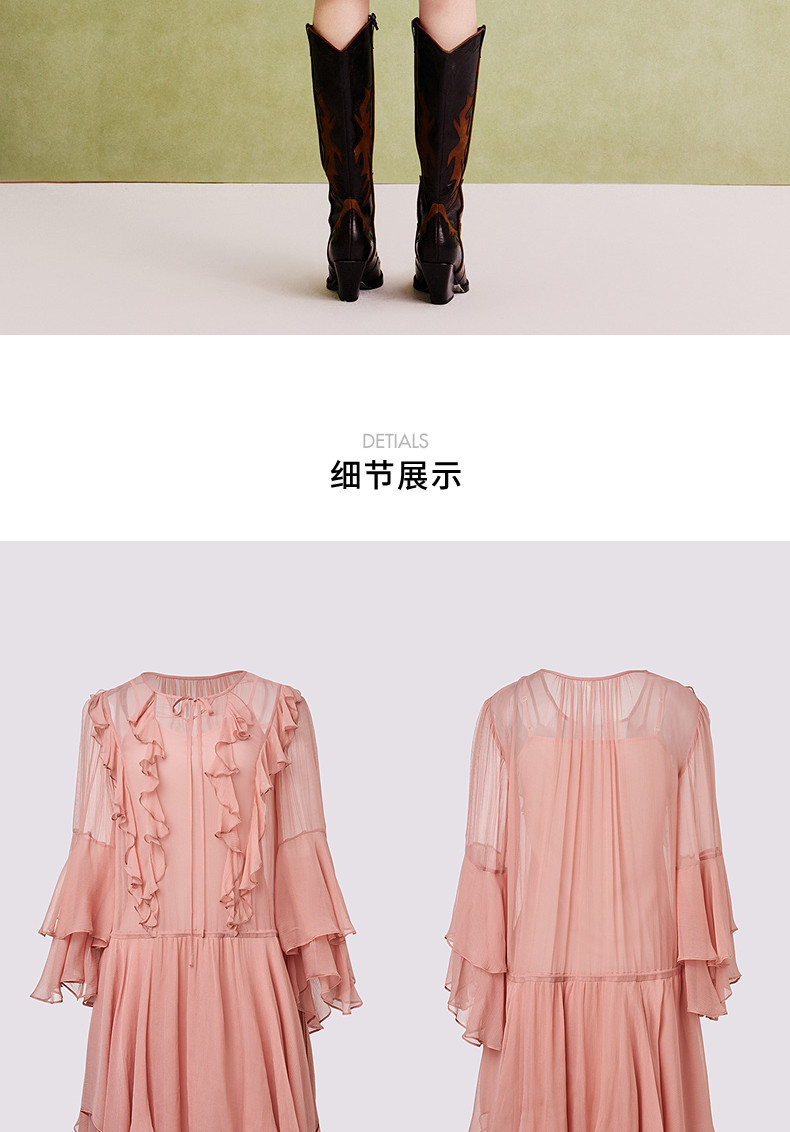 【商场同款】MAXRIENY温柔浪漫荷叶边连衣裙25夏复古法式长袖中裙(货号:MC86DR088)