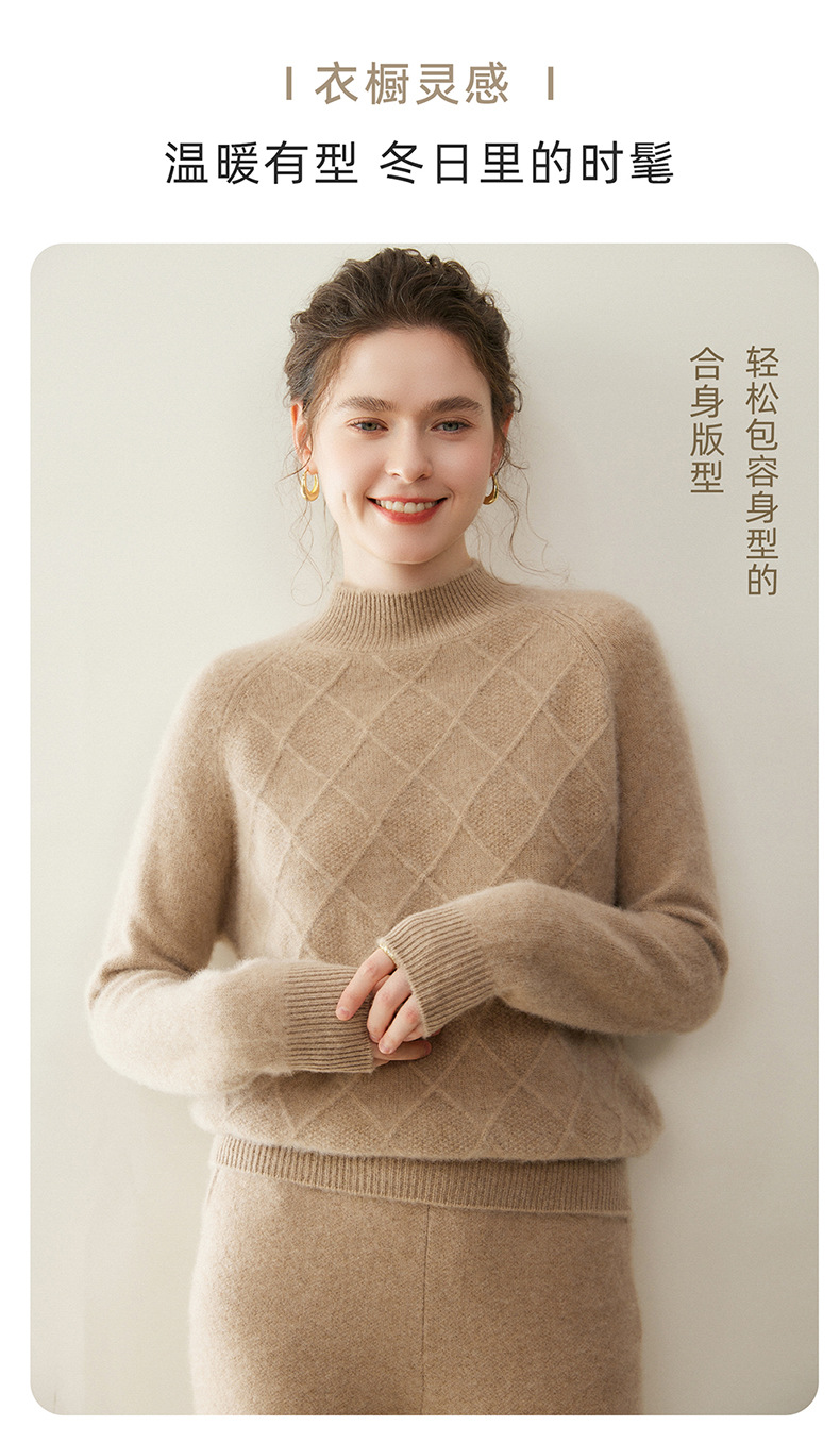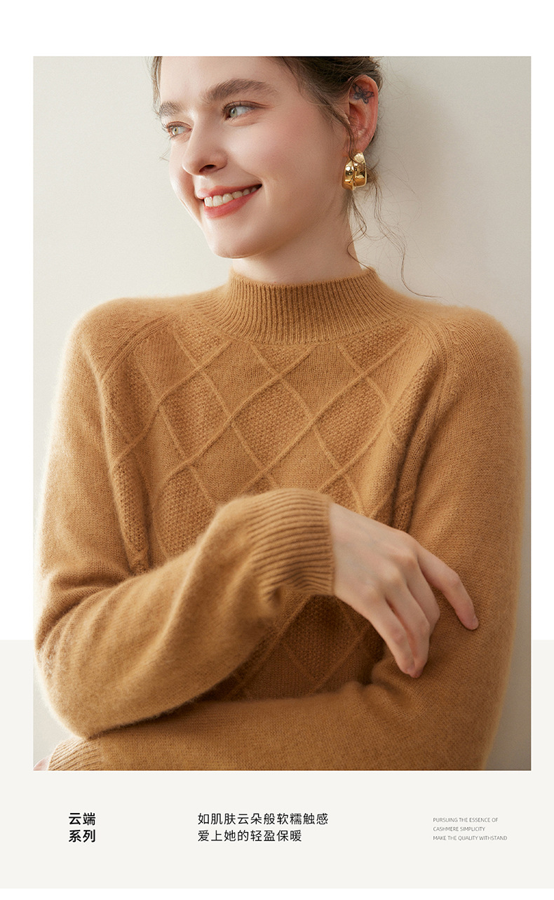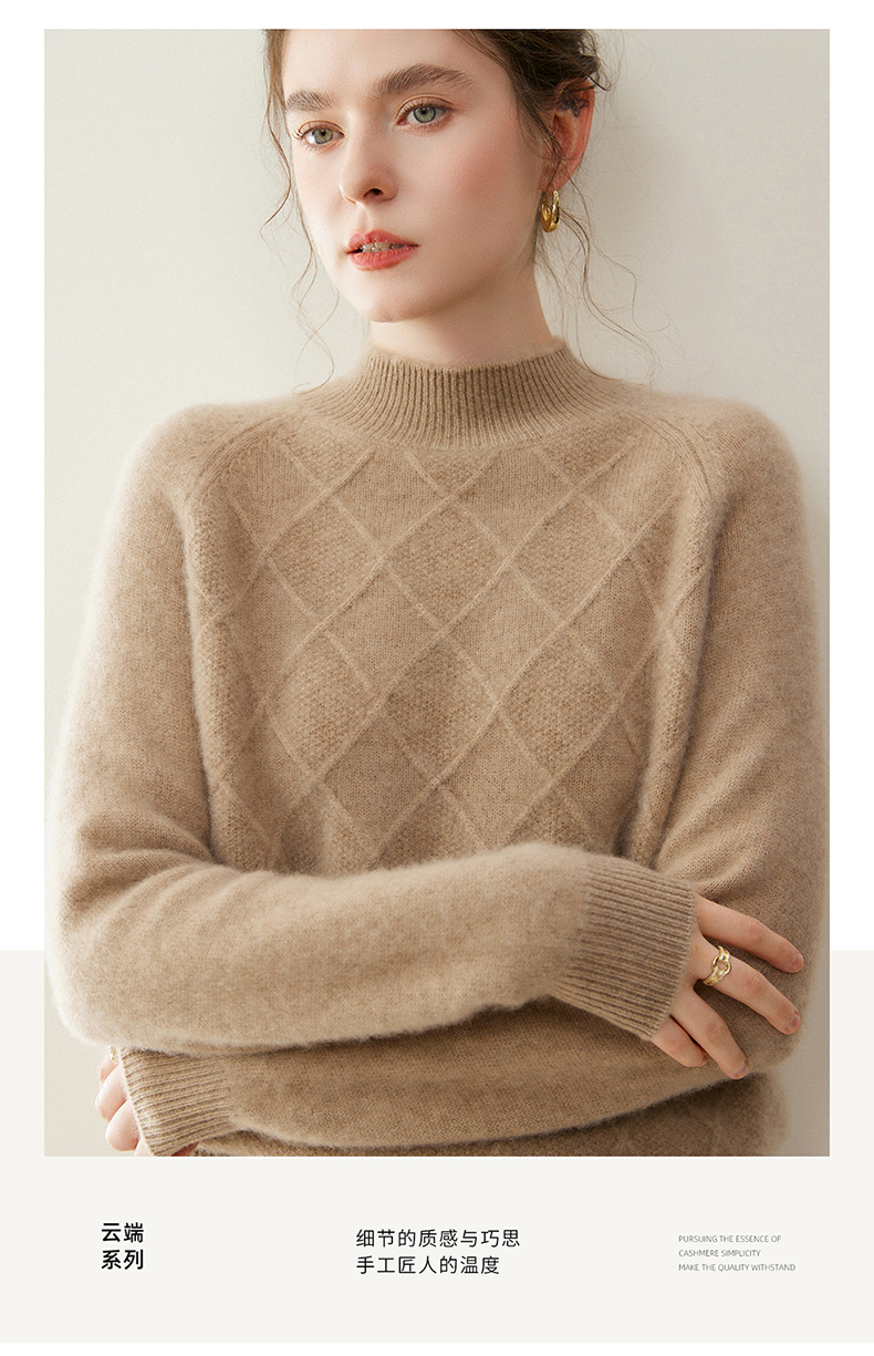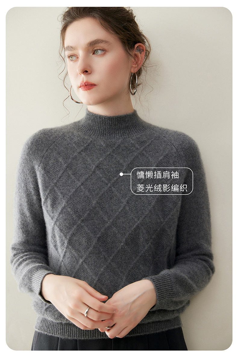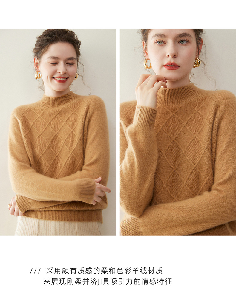 「高货rg」全新升级【铂金会员367/天猫499/差价132】(00316)洛诗琳气质半高领羊绒衫2025秋冬新款加厚菱格针织毛衣女