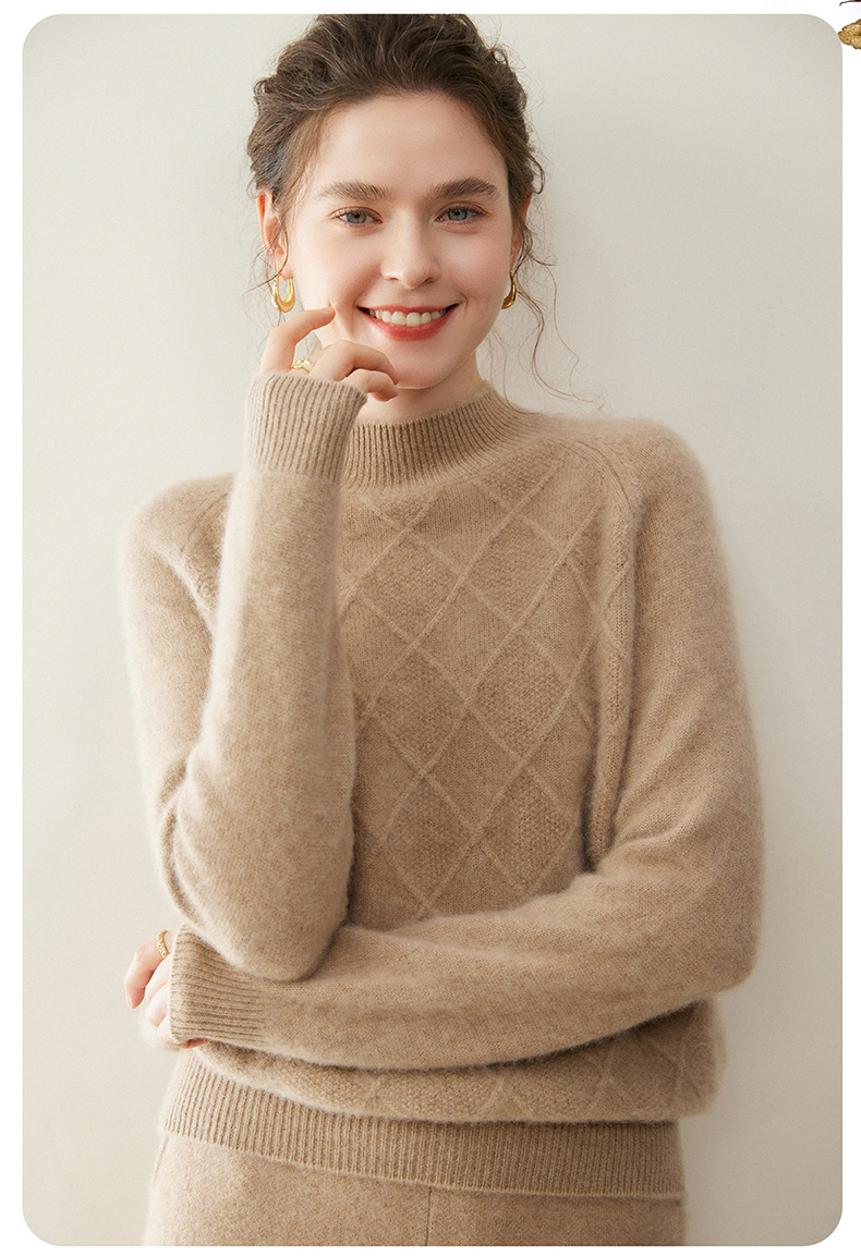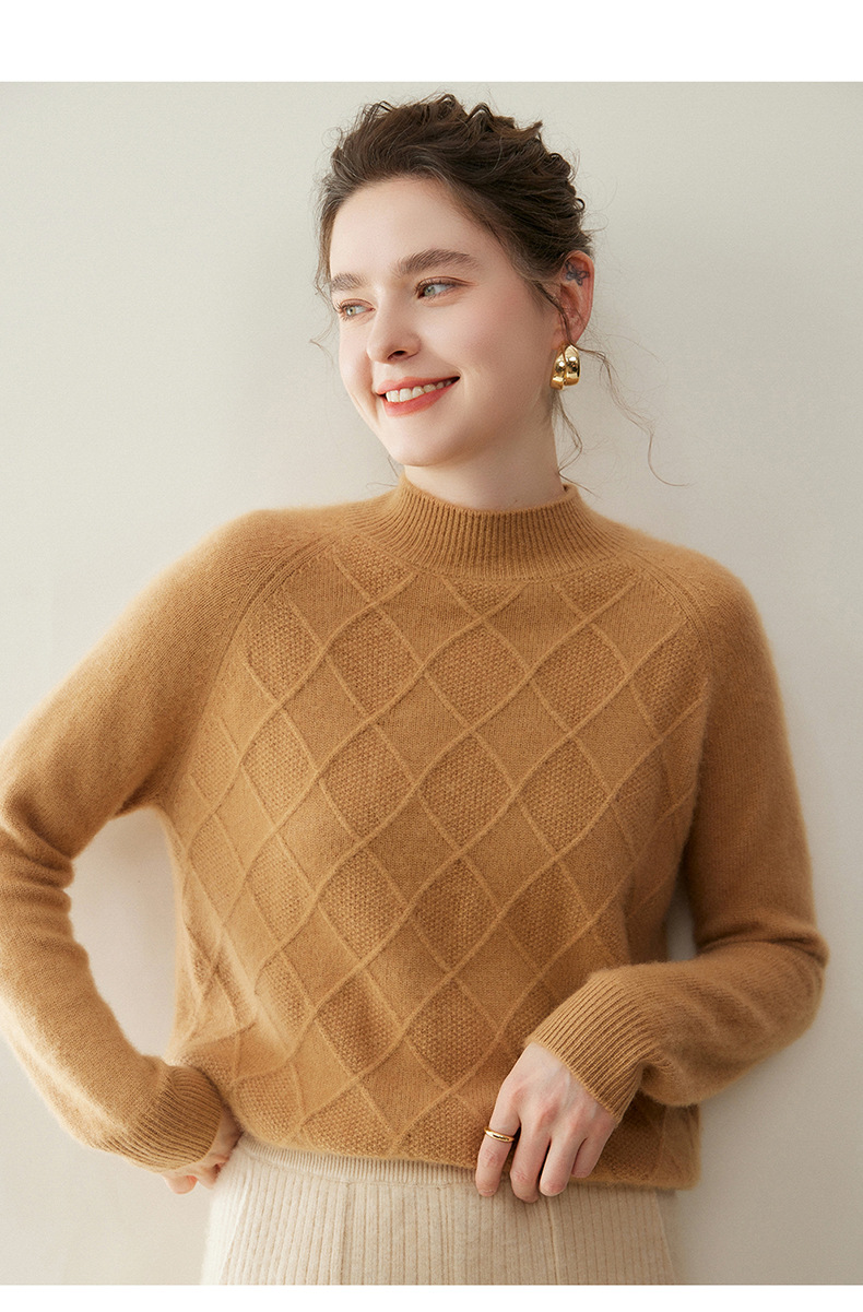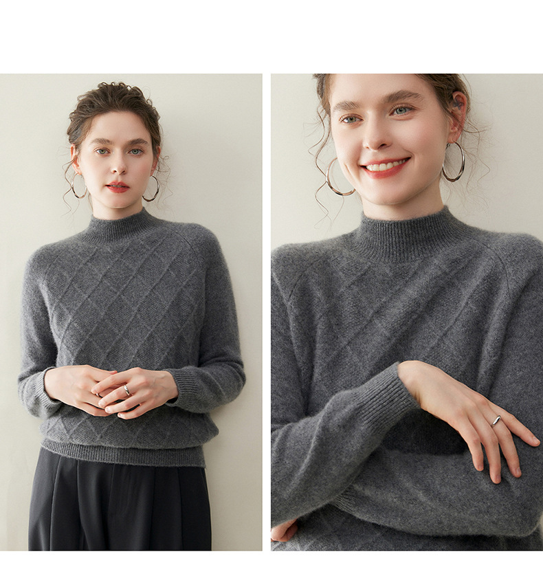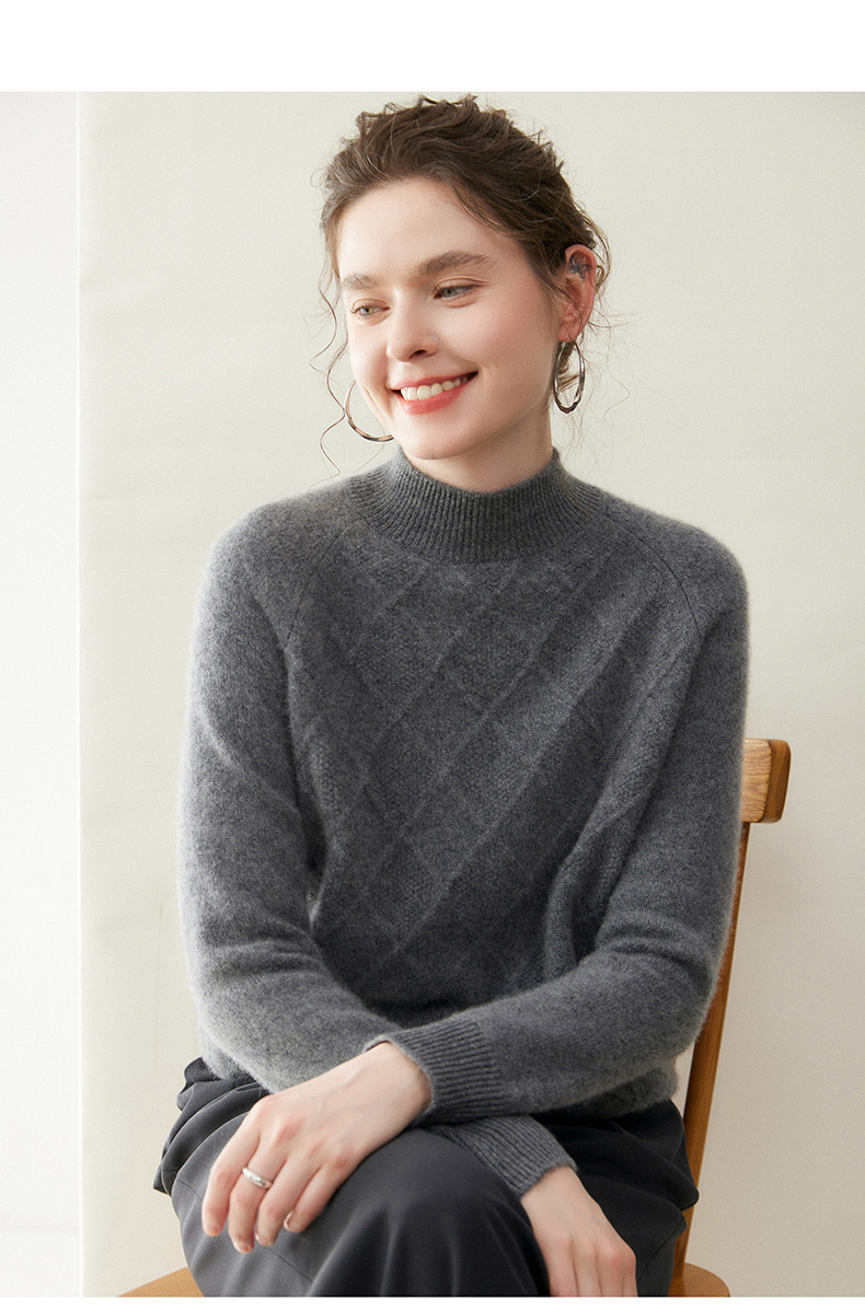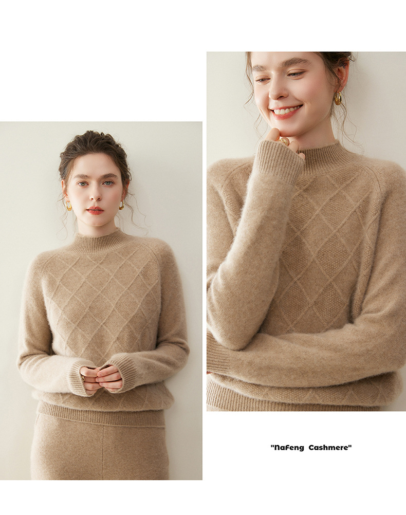 「高货rg」全新升级【铂金会员367/天猫499/差价132】(00316)洛诗琳气质半高领羊绒衫2025秋冬新款加厚菱格针织毛衣女