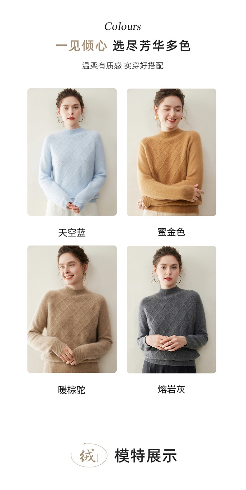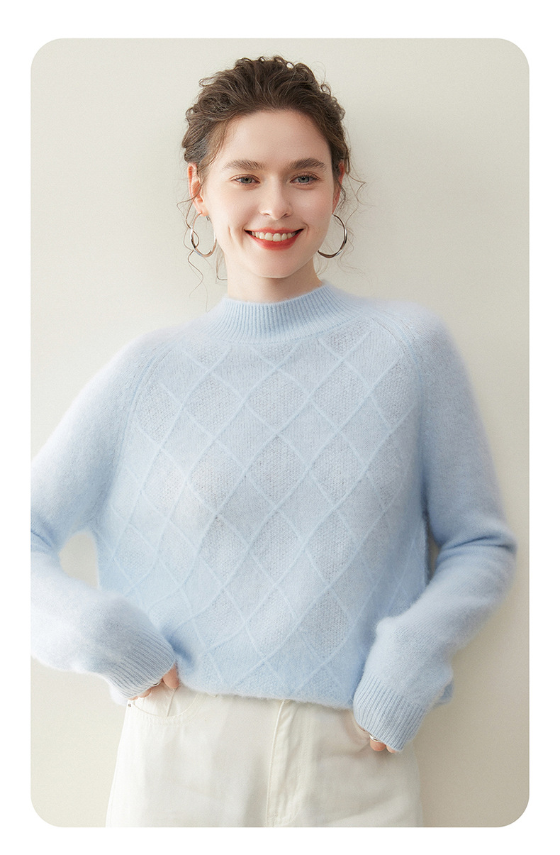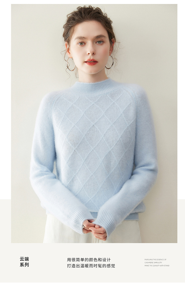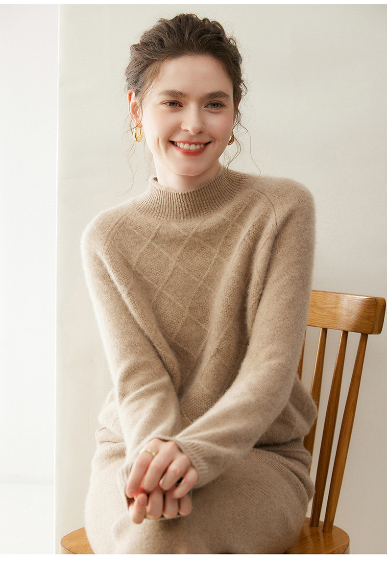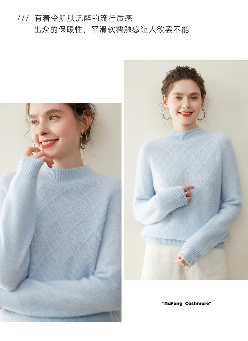 「高货rg」全新升级【铂金会员367/天猫499/差价132】(00316)洛诗琳气质半高领羊绒衫2025秋冬新款加厚菱格针织毛衣女