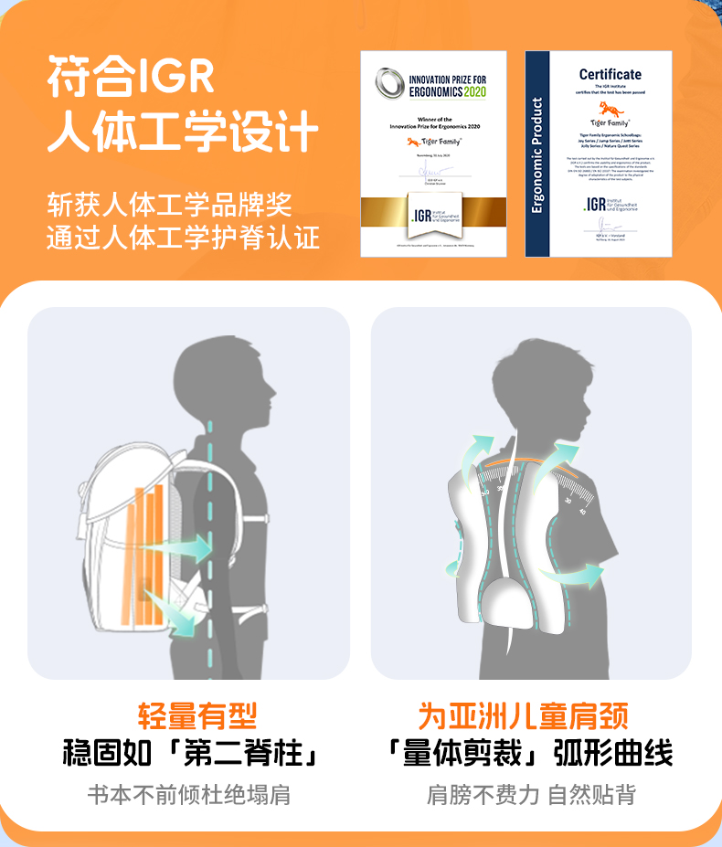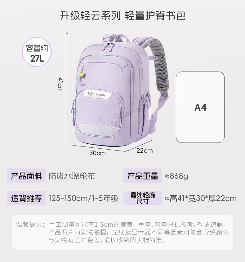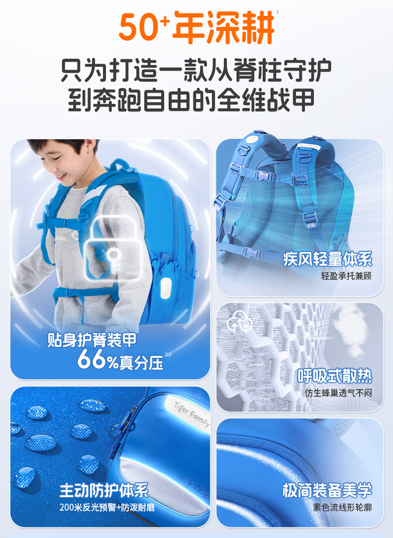 tigerfamily虎米儿童书包小学生护脊减负超轻1-3年级双肩背包轻云