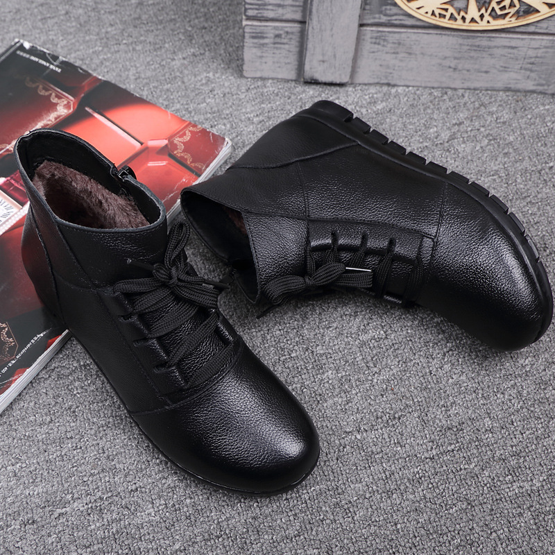 真皮妈妈鞋冬季平底软底加绒保暖大码棉靴 LLT-201
