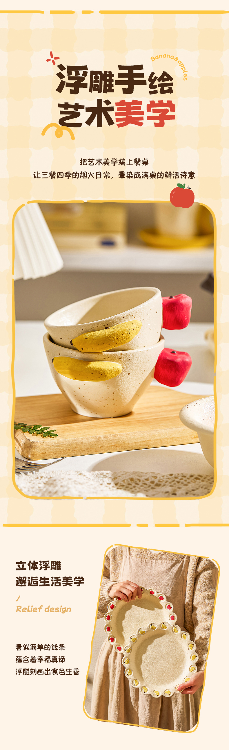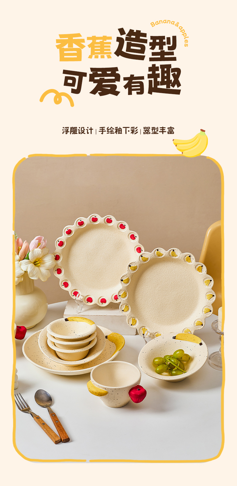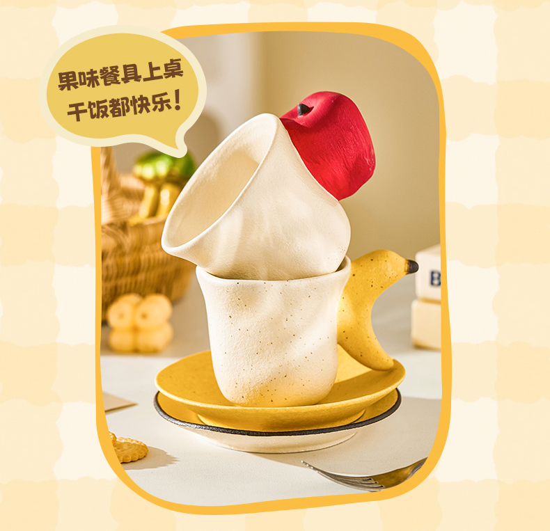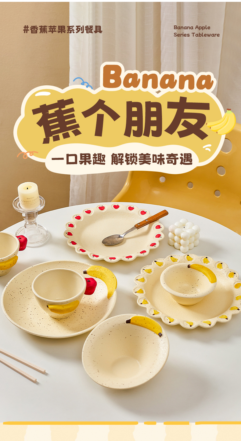 摩登主妇釉下彩盘子漂亮餐具香蕉酸奶碗具家用陶瓷杯浮雕水果餐盘 商品图0